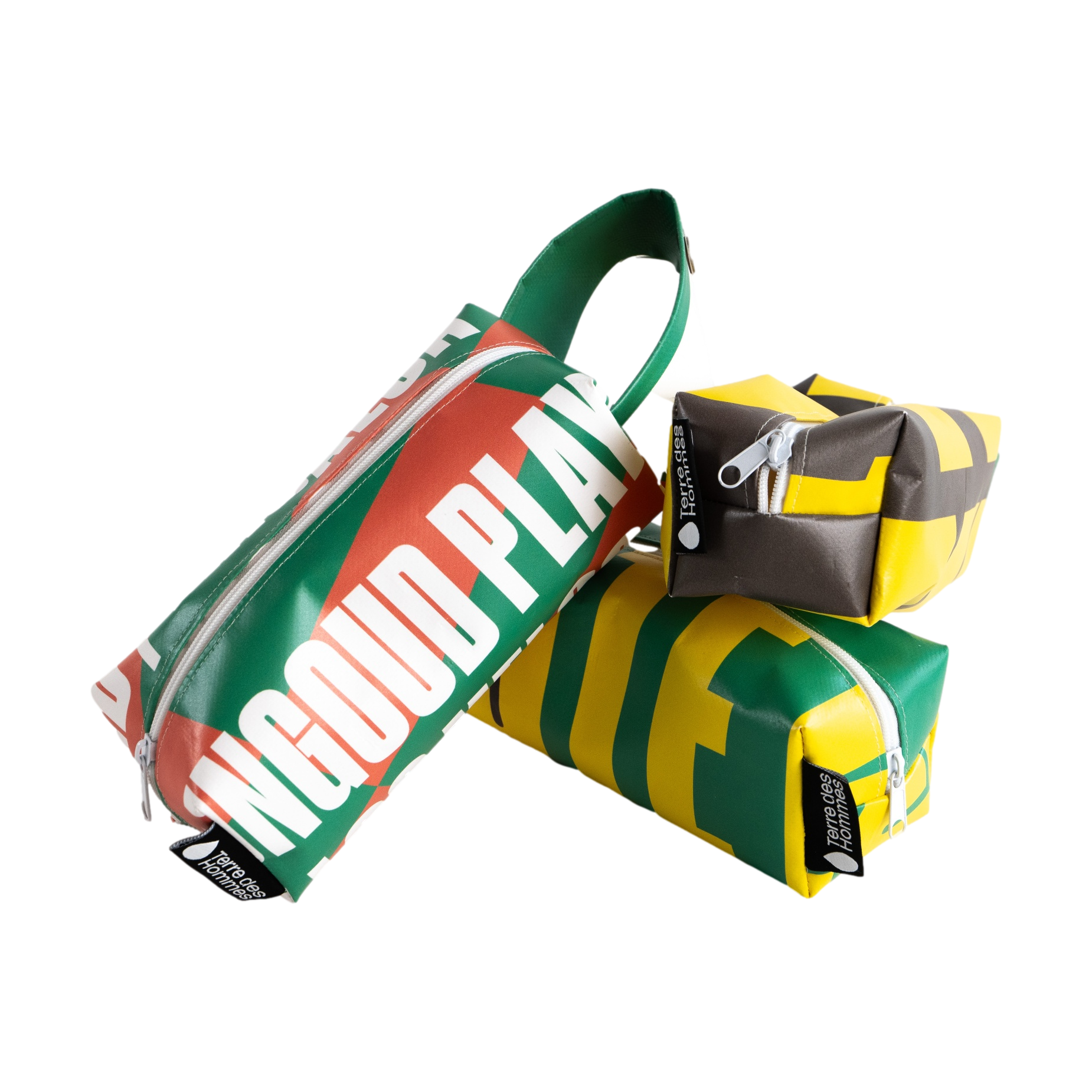 Deze duo color etui is gemaakt van oude festivalbanners en krijgt zo een tweede leven. Elk etui is uniek, praktisch en een echte blikvanger.