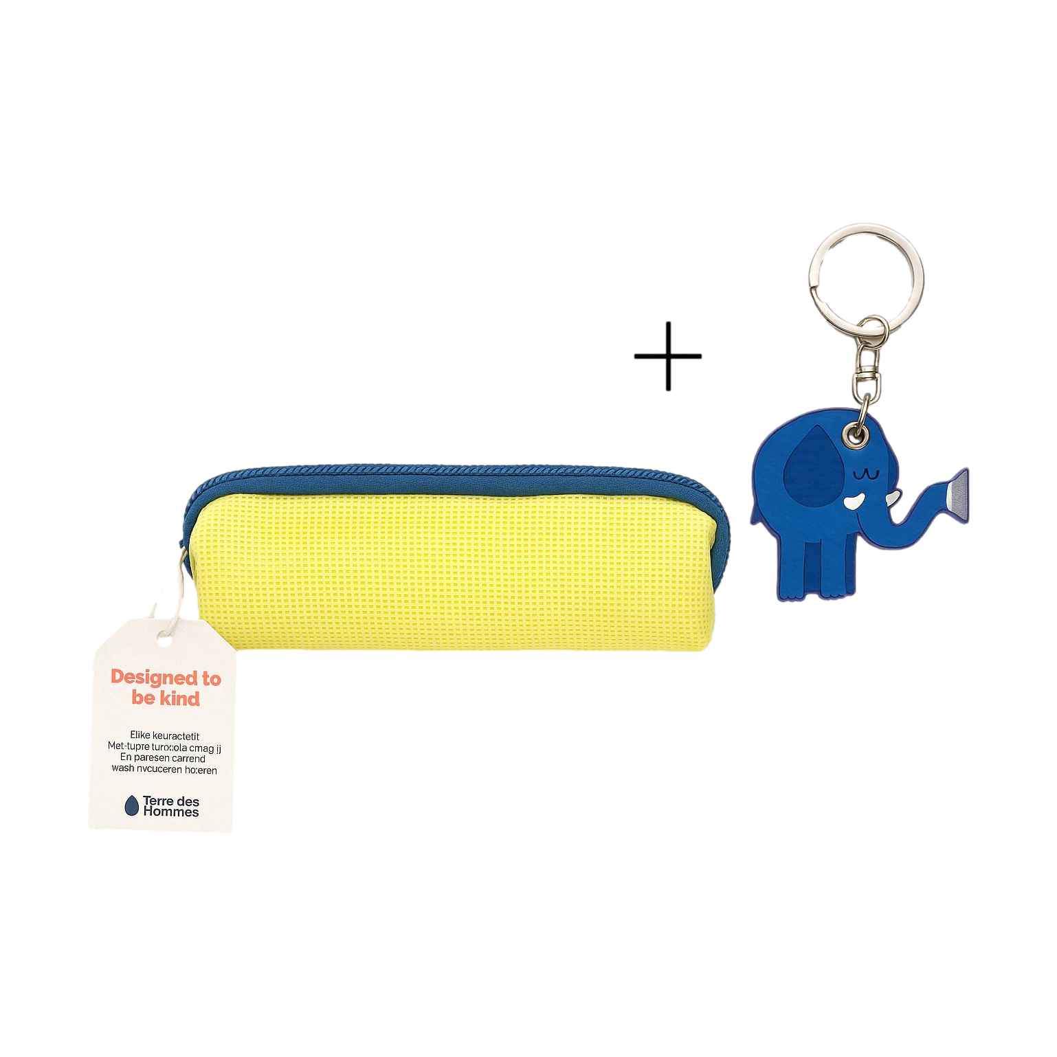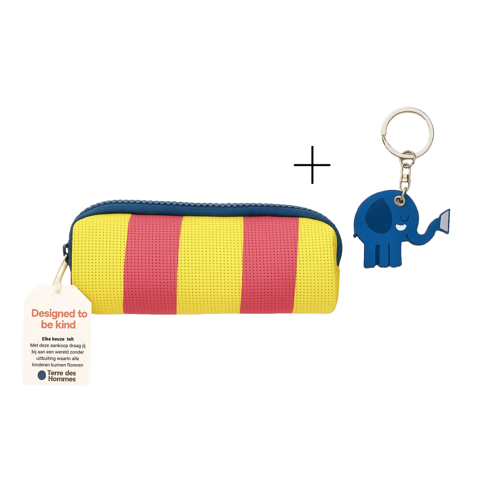 De opbrengst van deze gerecyclede etuis helpt mee aan een wereld waarin ieder kind veilig en zonder uitbuiting kan opgroeien.