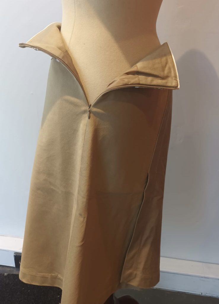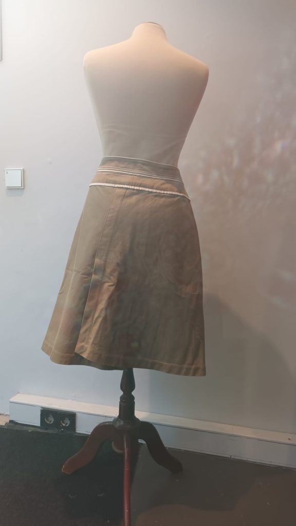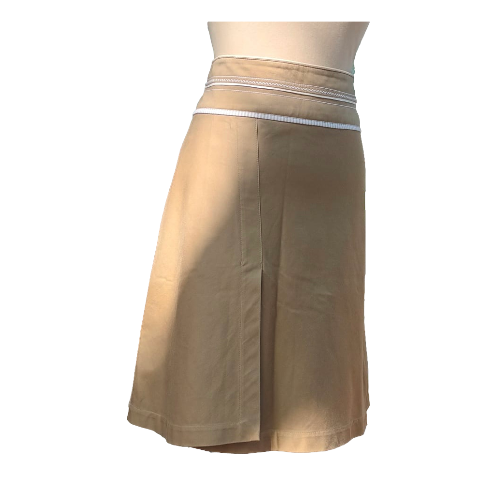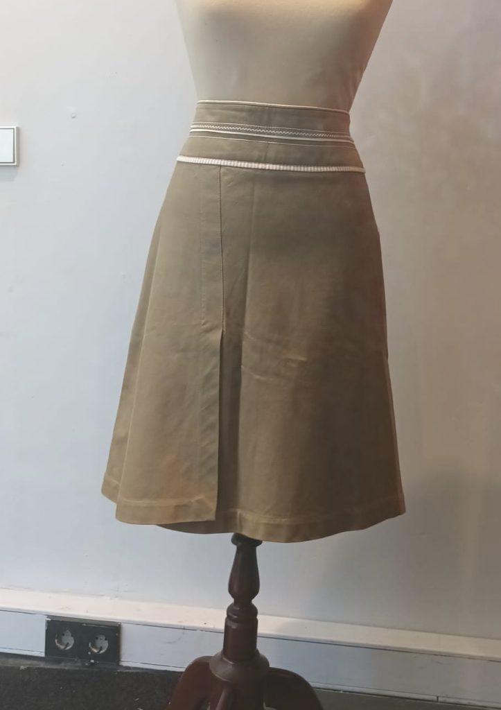 Design rok beige met borduursels aan de tailleband – maat 40 – 97% katoen en 3% elastine – binnenrok 100% polyesther
