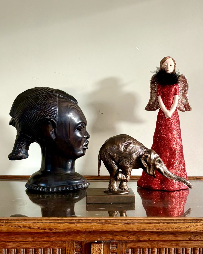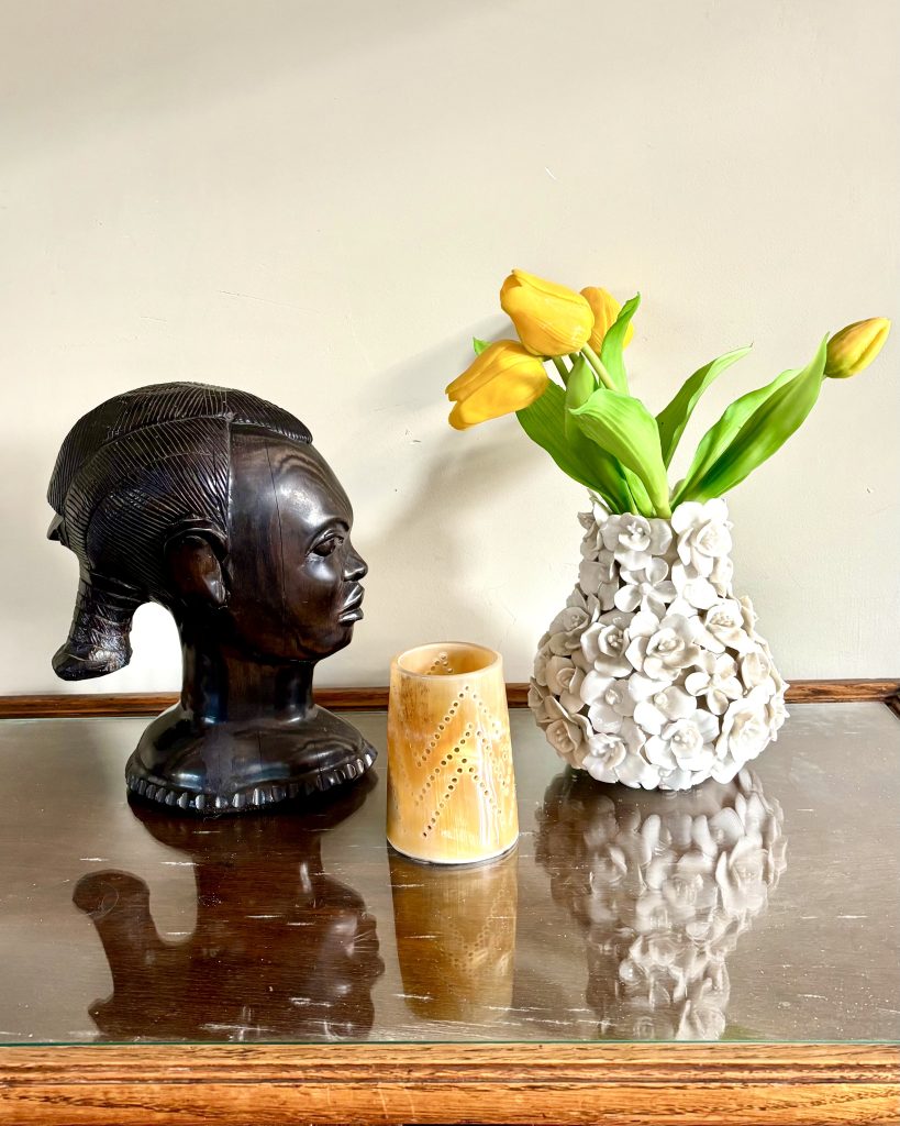 Ebbenhout staat bekend om zijn diepe, donkere kleur en dichte structuur, wat het perfect maakt voor fijn snijwerk. De warme glans en het vakmanschap maken dit beeld tot een bijzonder decoratief object dat karakter toevoegt aan elk interieur – van modern tot etnisch of klassiek.
