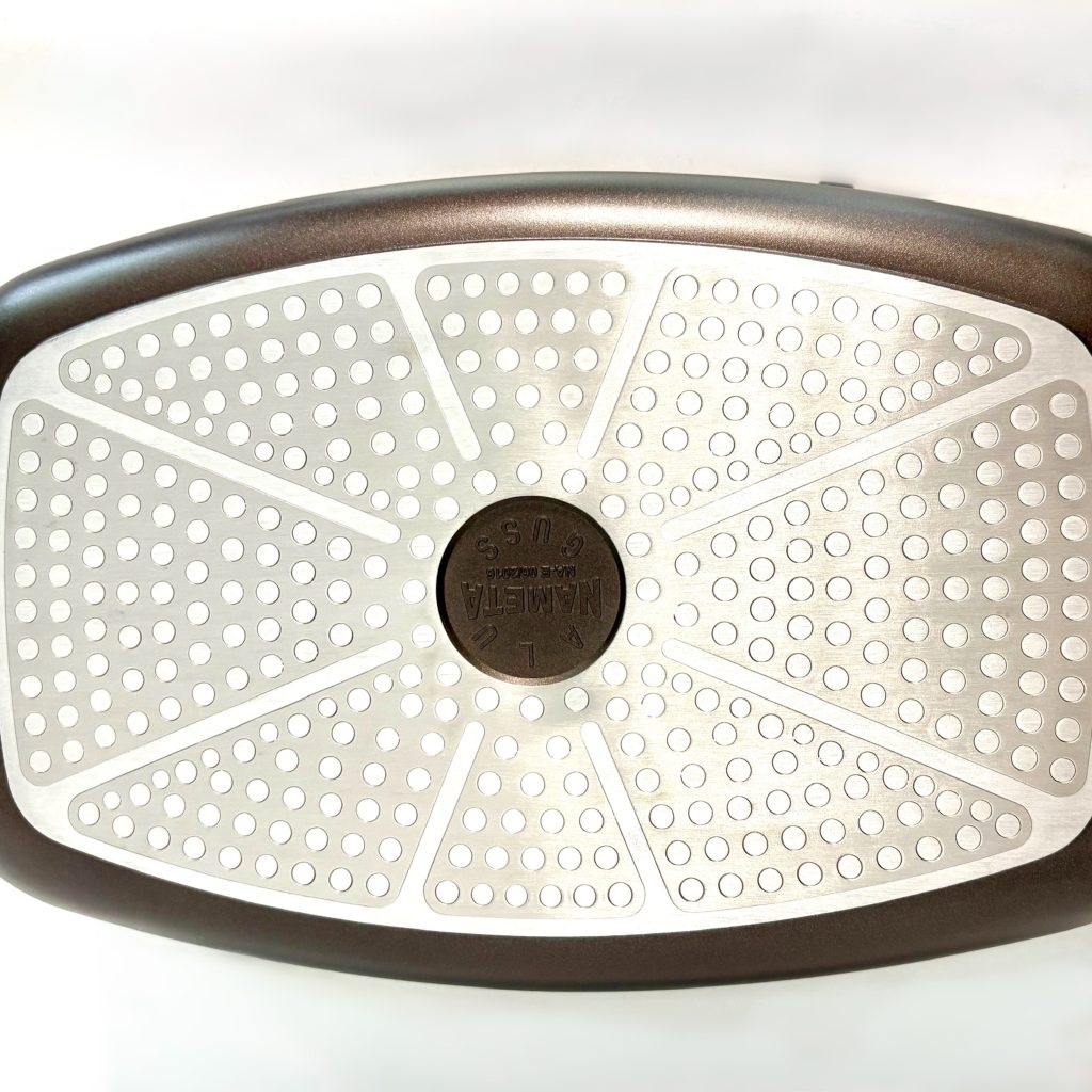 Gemaakt van hoogwaardig gegoten aluminium, biedt deze braadslede een perfecte combinatie van robuustheid, warmteverdeling en gebruiksgemak.