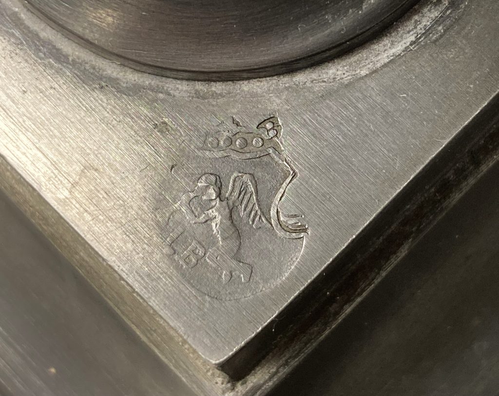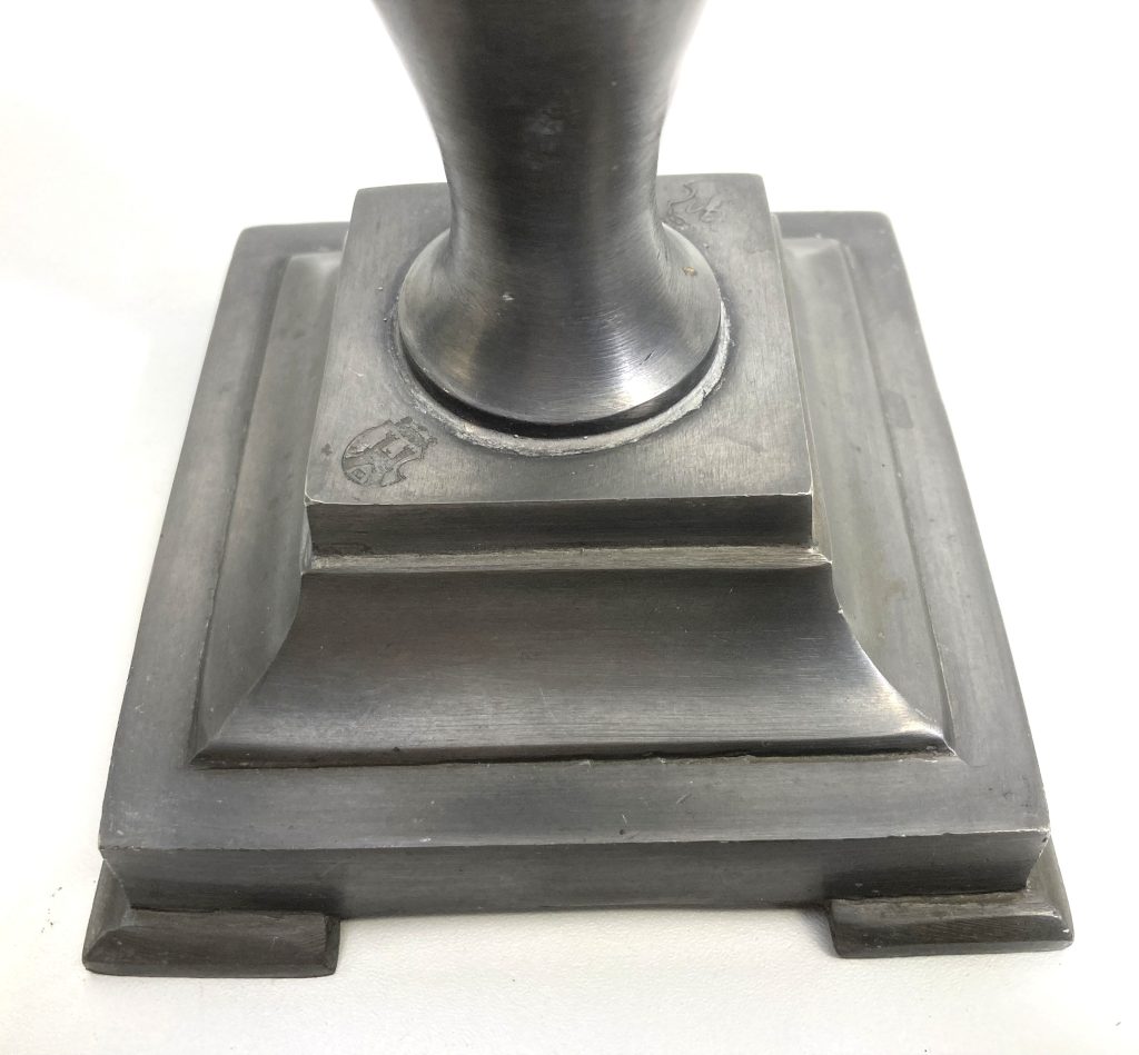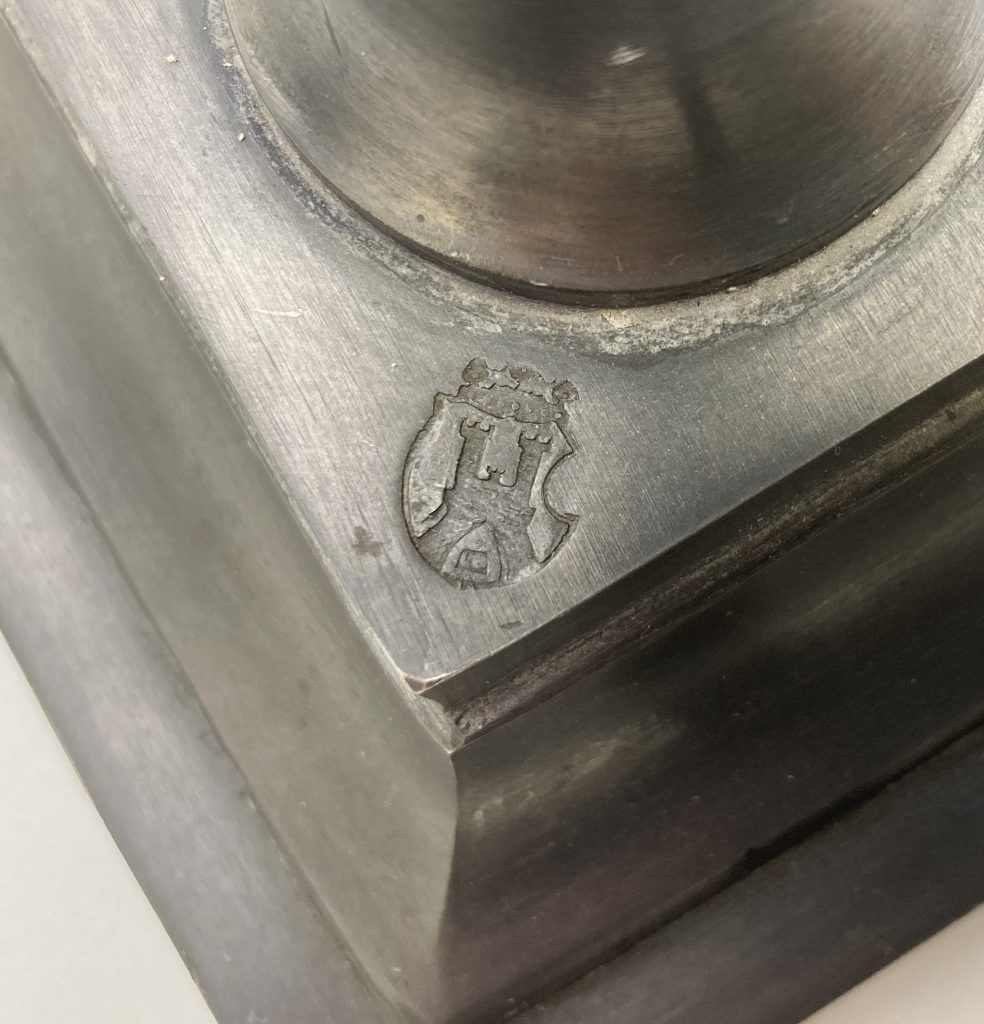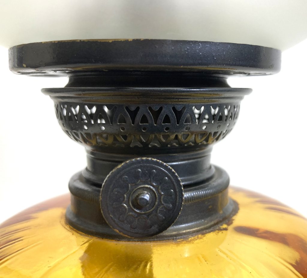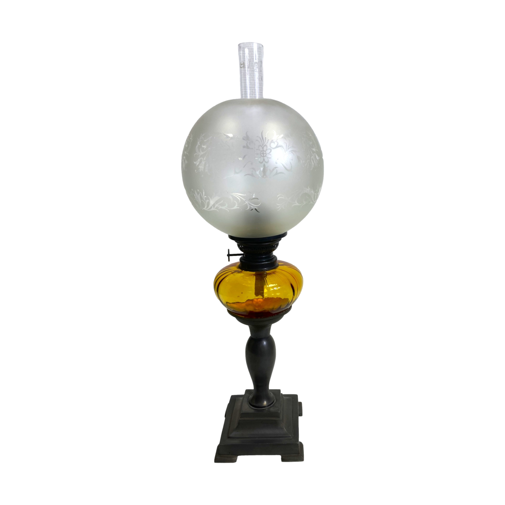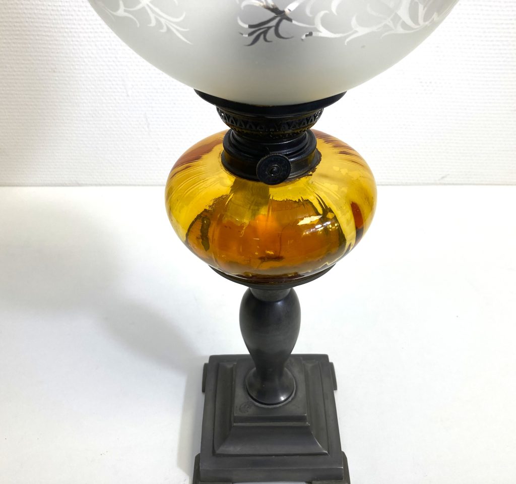 Antieke olielamp met tinnen voet. 2x Gemerkt (zie foto’s).