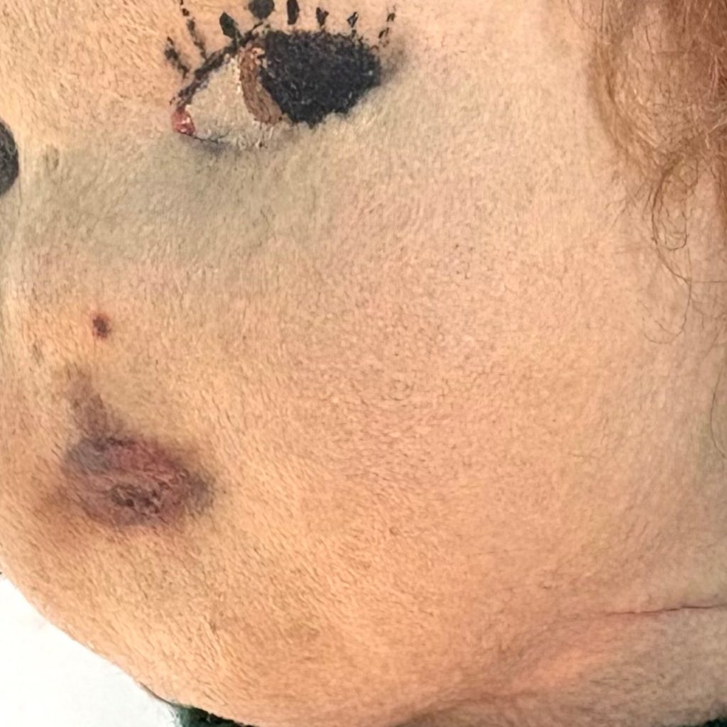 Gezicht: Handgeschilderd gezicht met kenmerken zoals gemodelleerde wenkbrauwen en geverfde blosjes op de handen en voeten