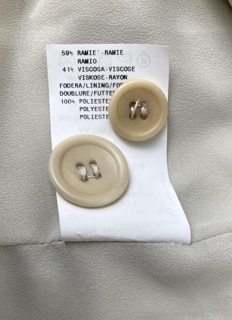 - 59% Ramie, 41% Viscose. Voering: Polyester