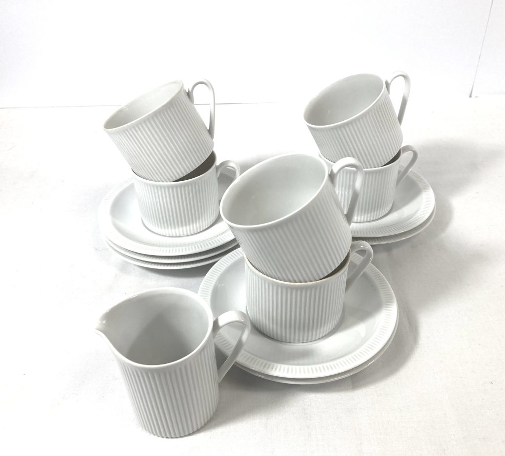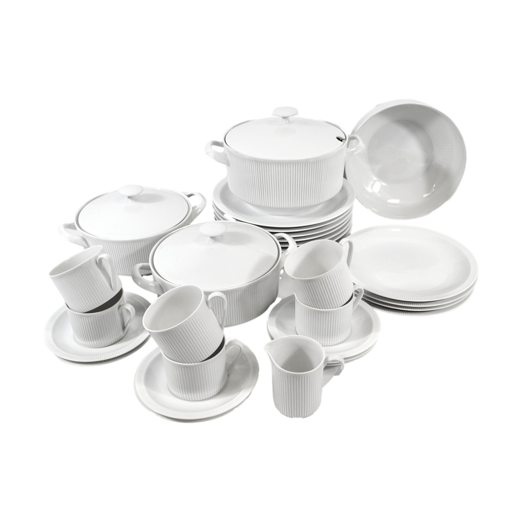 Diverse porseleinen serviesdelen van Arzberg Porcelain. Model: Cannelee. Jaren ’70.
