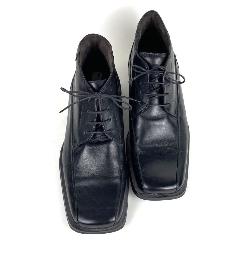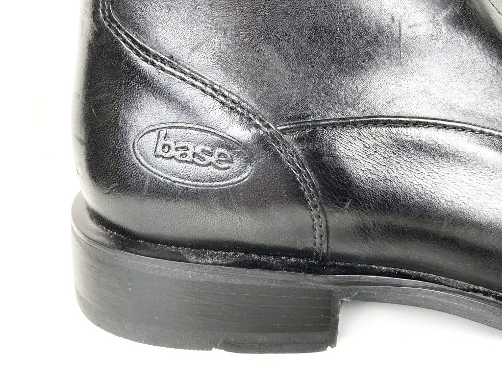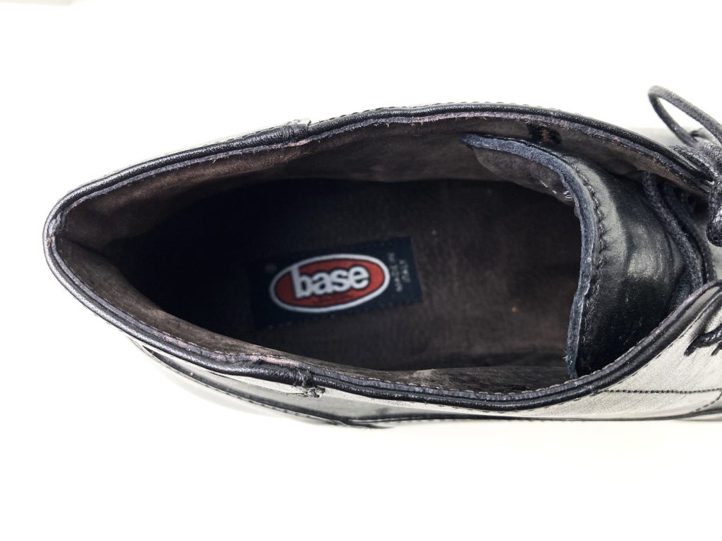 Nieuwe hoge zwarte leren veterschoenen van Base London (Italië). Maat 43 (9). Leer gevoerd. Kunststof zool. Met stompe neus. Breed model. Zonder uitneembare binnenzool. Inclusief onderhoudsinstructies. In een prachtige kwaliteit leer.