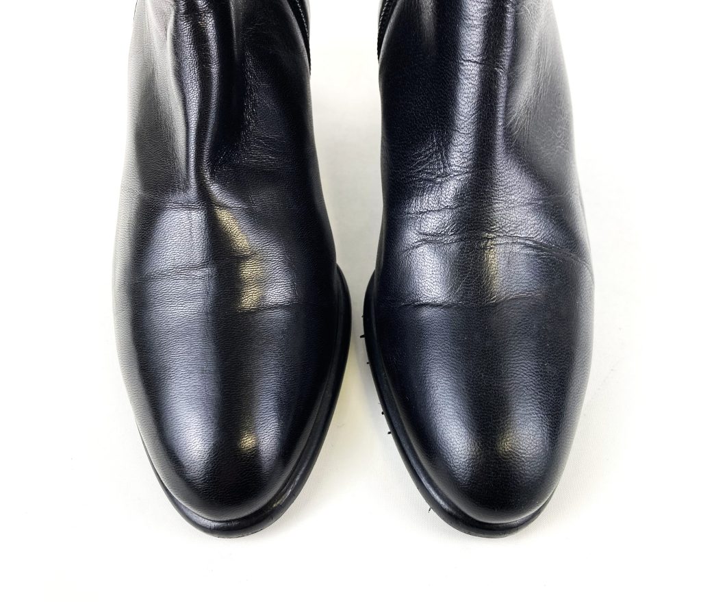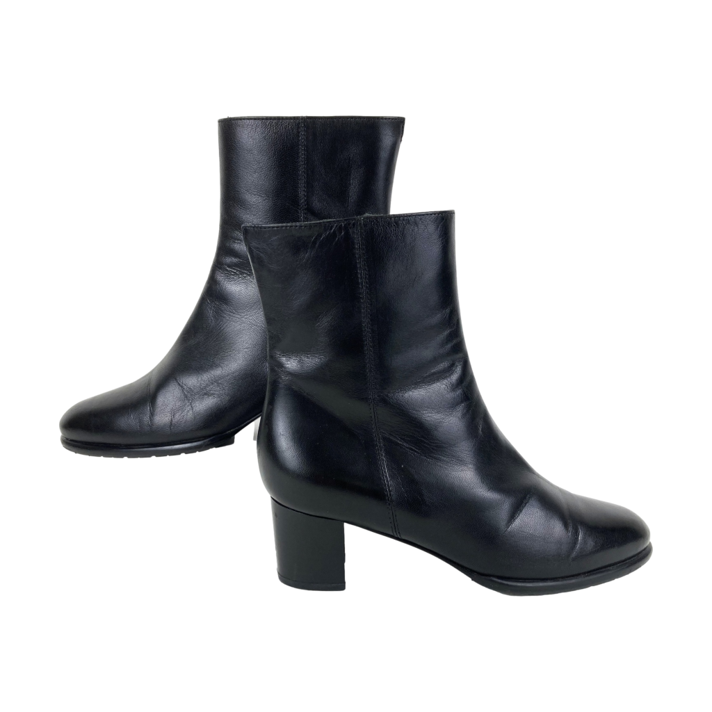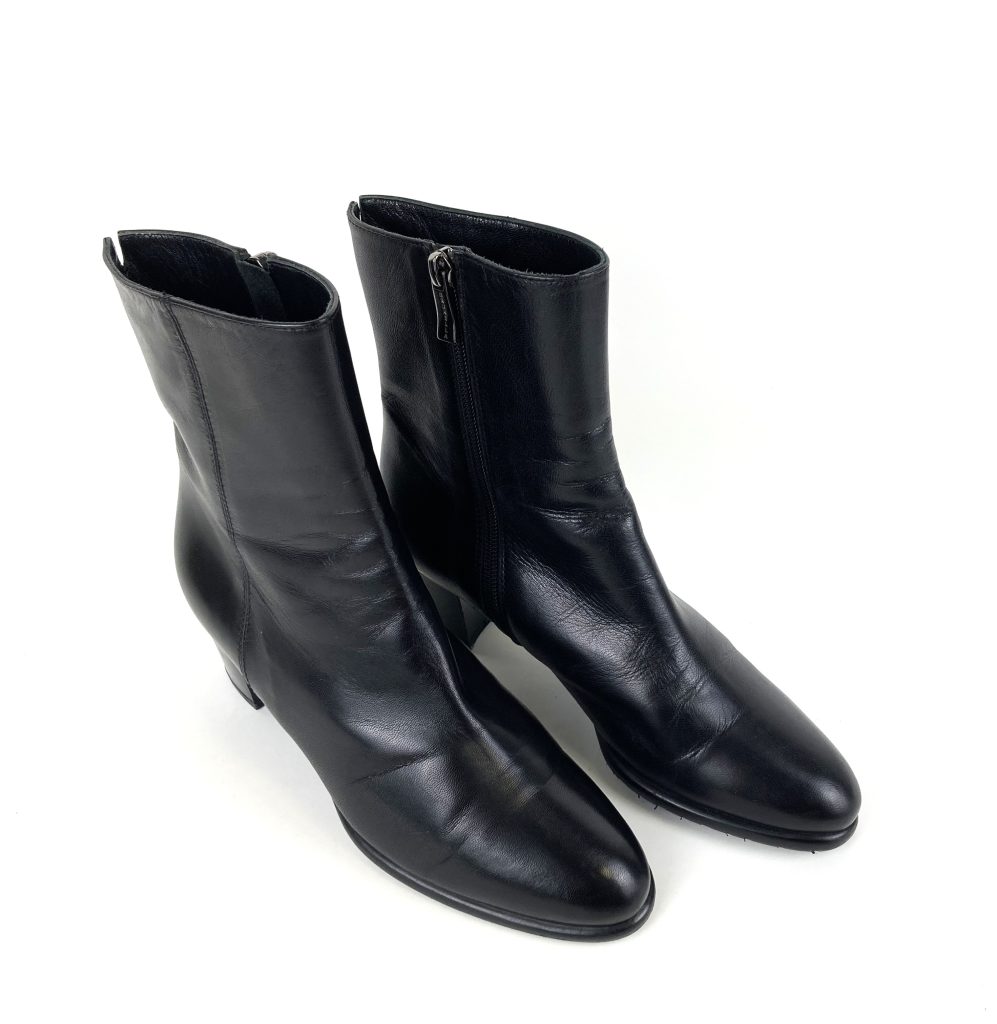 Zwarte leren dames enkellaarsjes van Brunella (Italië).
