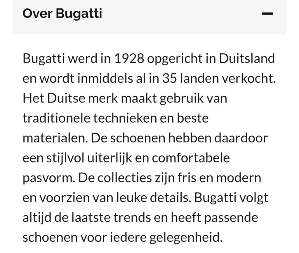 Voor meer info over Bugatti: zie foto.