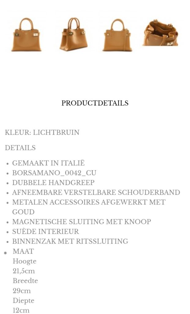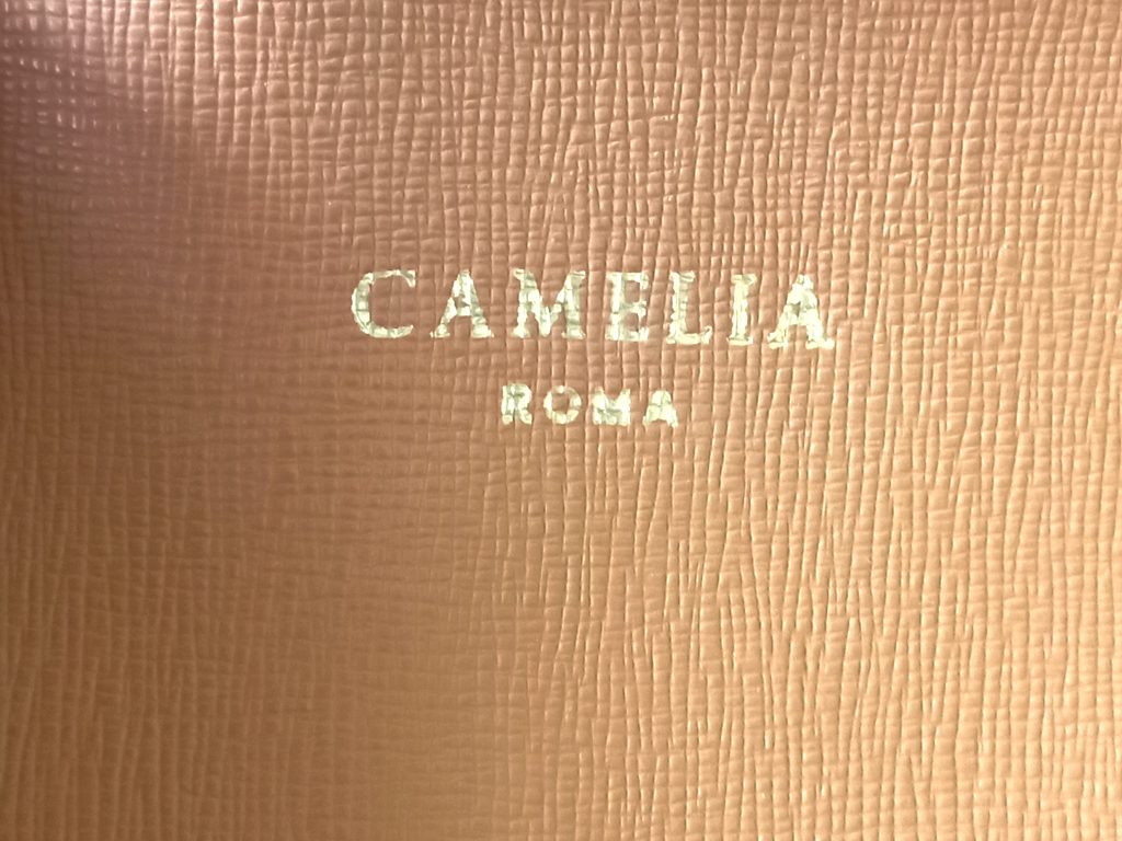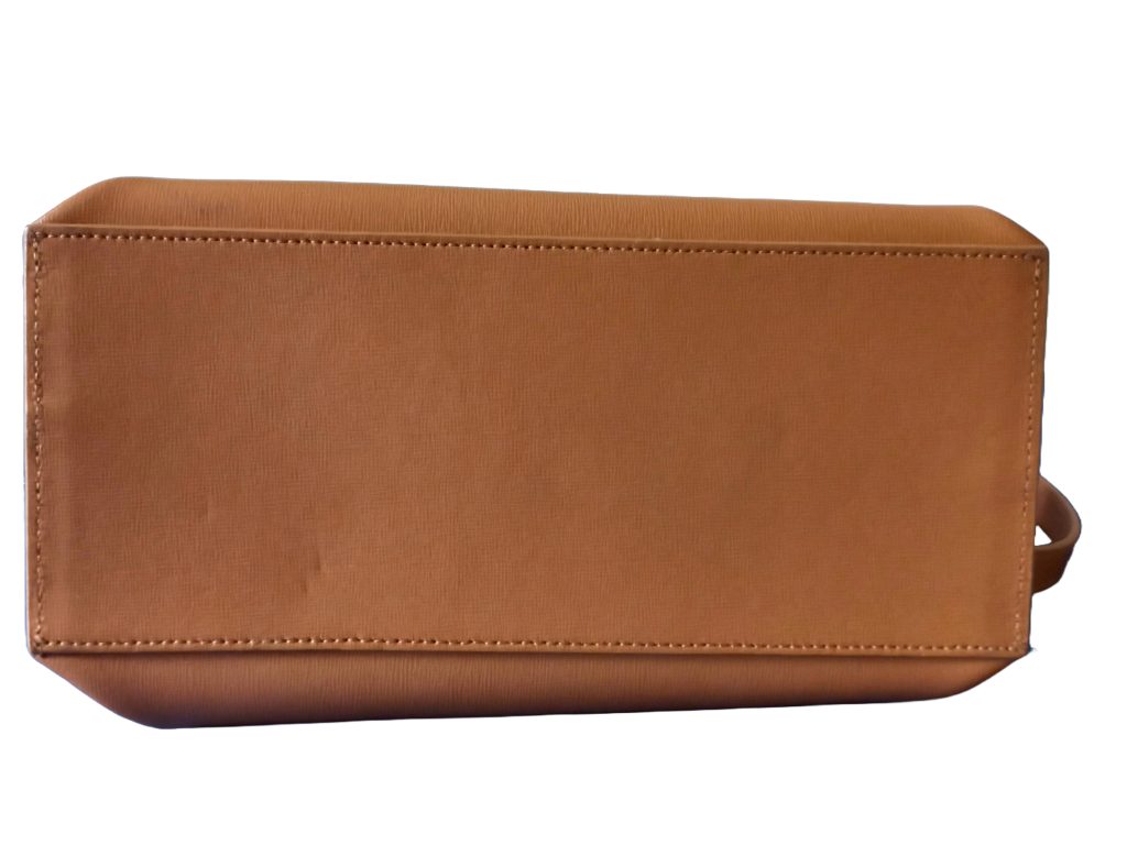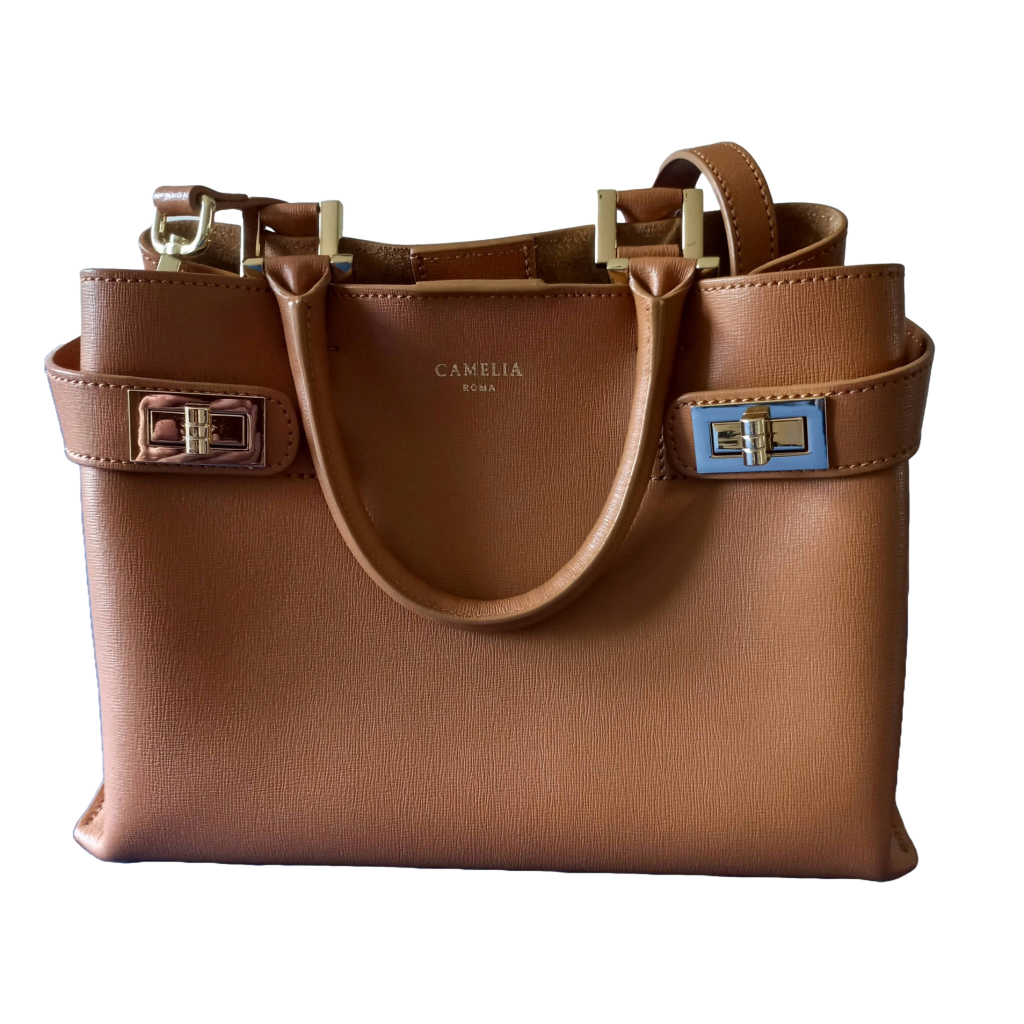 Licht bruine/cognac leren crossbody tas. Merk: Camelia Roma (Italië). Model: Mini Saffiano.
