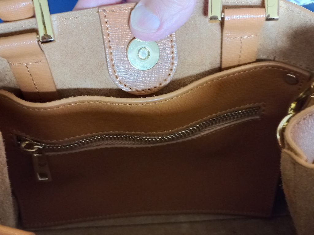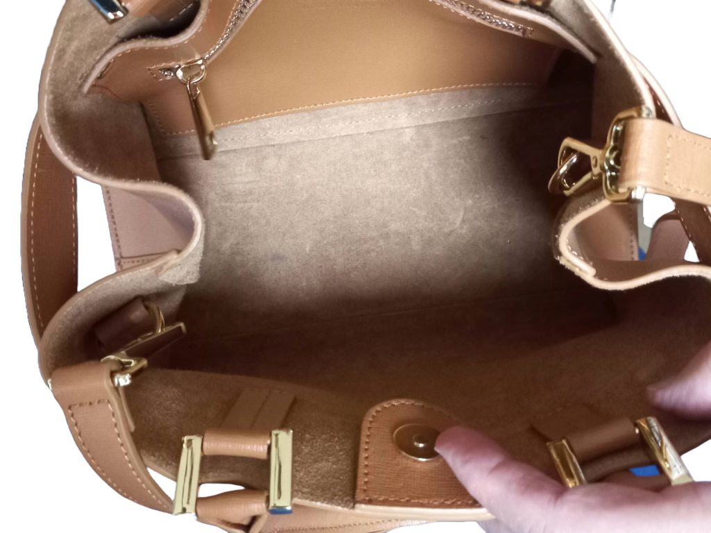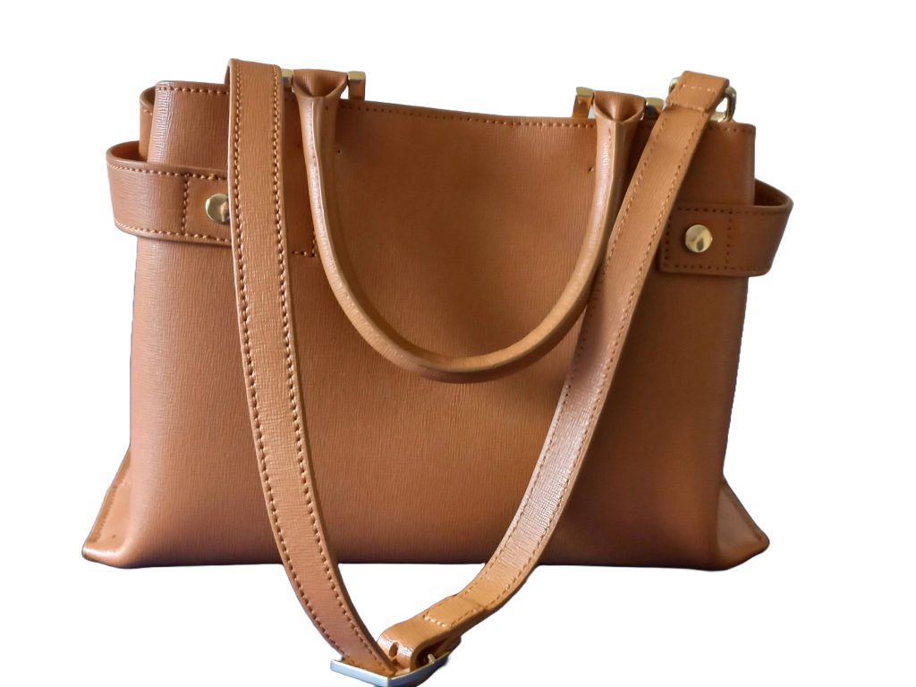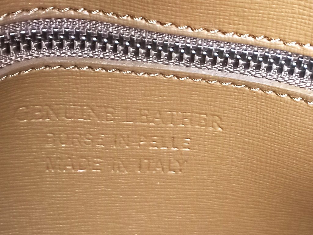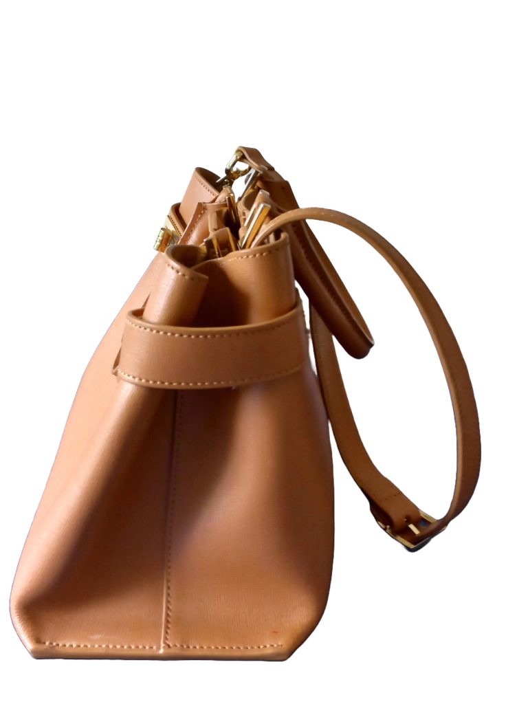 Licht bruine/cognac leren crossbody tas. Merk: Camelia Roma (Italië). Model: Mini Saffiano.