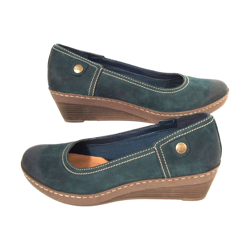 Clarks – dames sleehak schoenen – blauw – maat 40,5 (wijdte W)