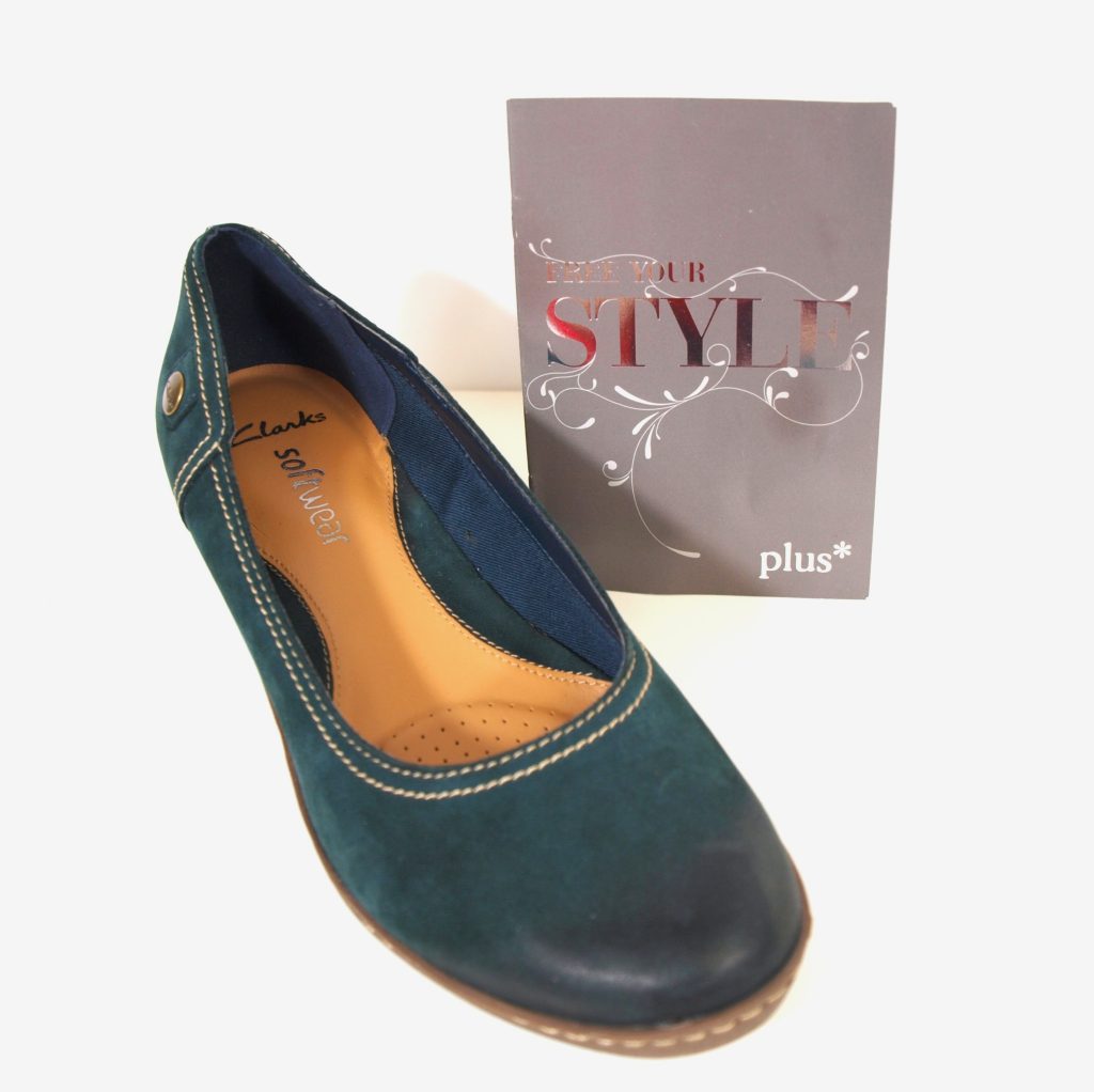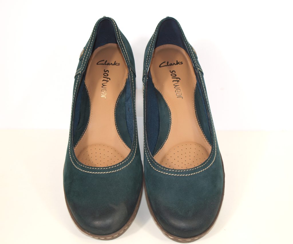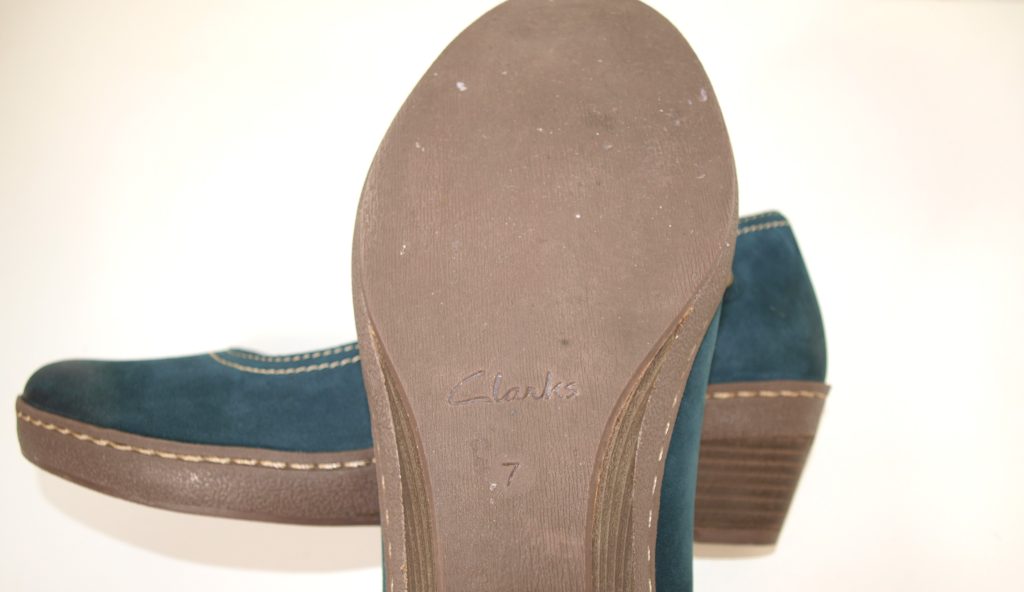 Nieuwe blauwe suède Clarks sleehak schoenen. Model: Harper Wish. Hakhoogte: 6 cm.