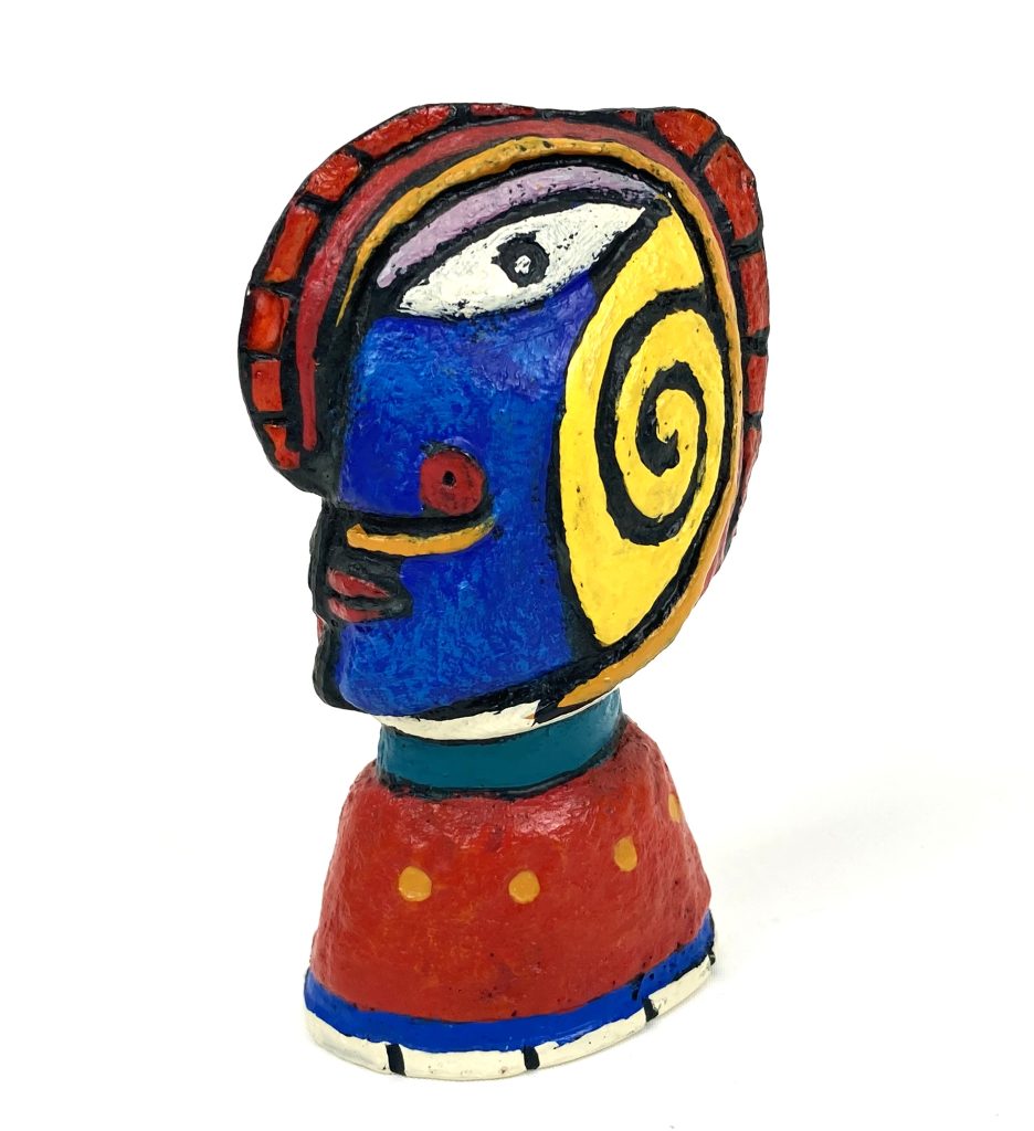Veelkleurige flessenstop sculptuur. Ontwerp: Clemens Briels. Gesigneerd: C. Briels.