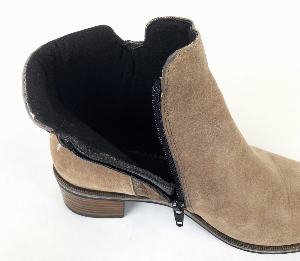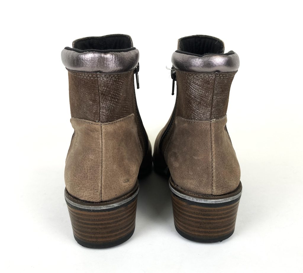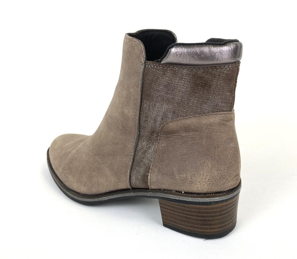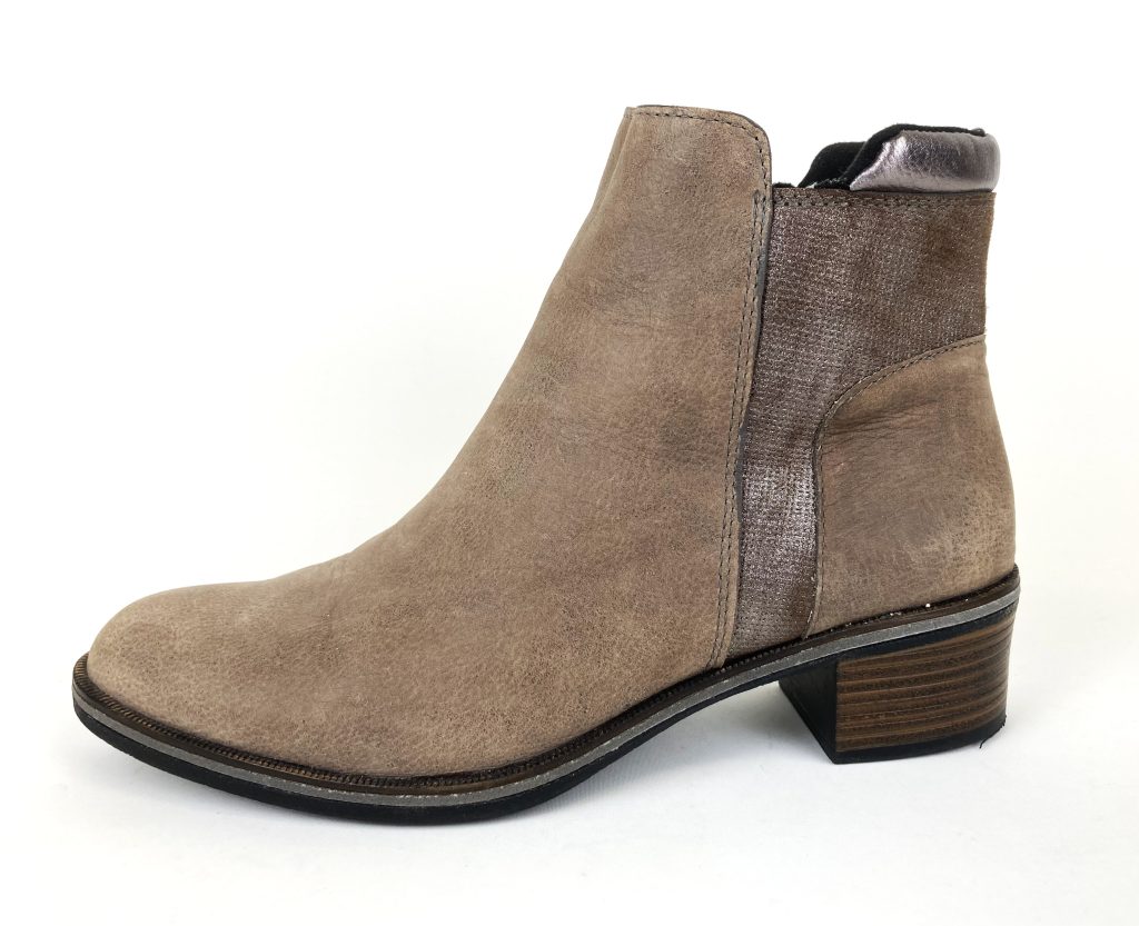 Met zilverkleurige hielrand. Met ritsje voor een gemakkelijke instap. Binnenzool ontbreekt.