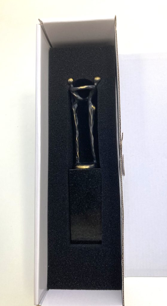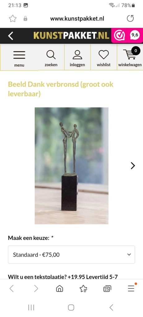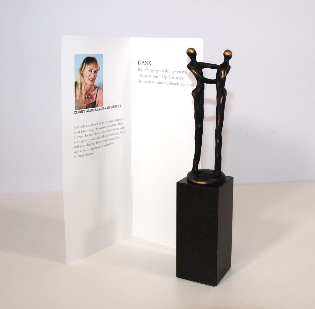 Nieuw in mooie geschenkdoos: verbronsd beeld “Dank”. Design: Corrie Ammerlaan. Gesigneerd: CAN. inclusief sokkel. Uitgegeven door Artihove.