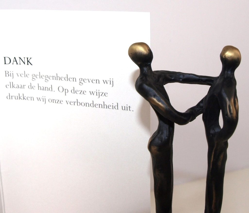 Een handdrukgebaar in sculptuur vorm laat jarenlang indruk achter, een ideaal geschenk om iemand te bedanken bij een afscheid of jubileum.