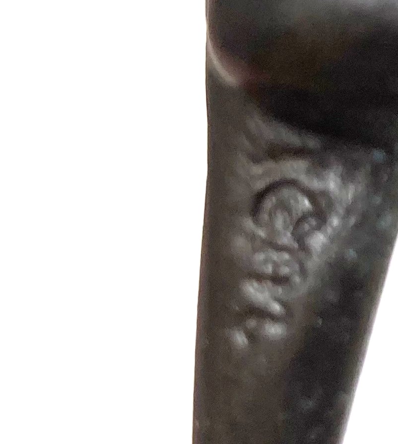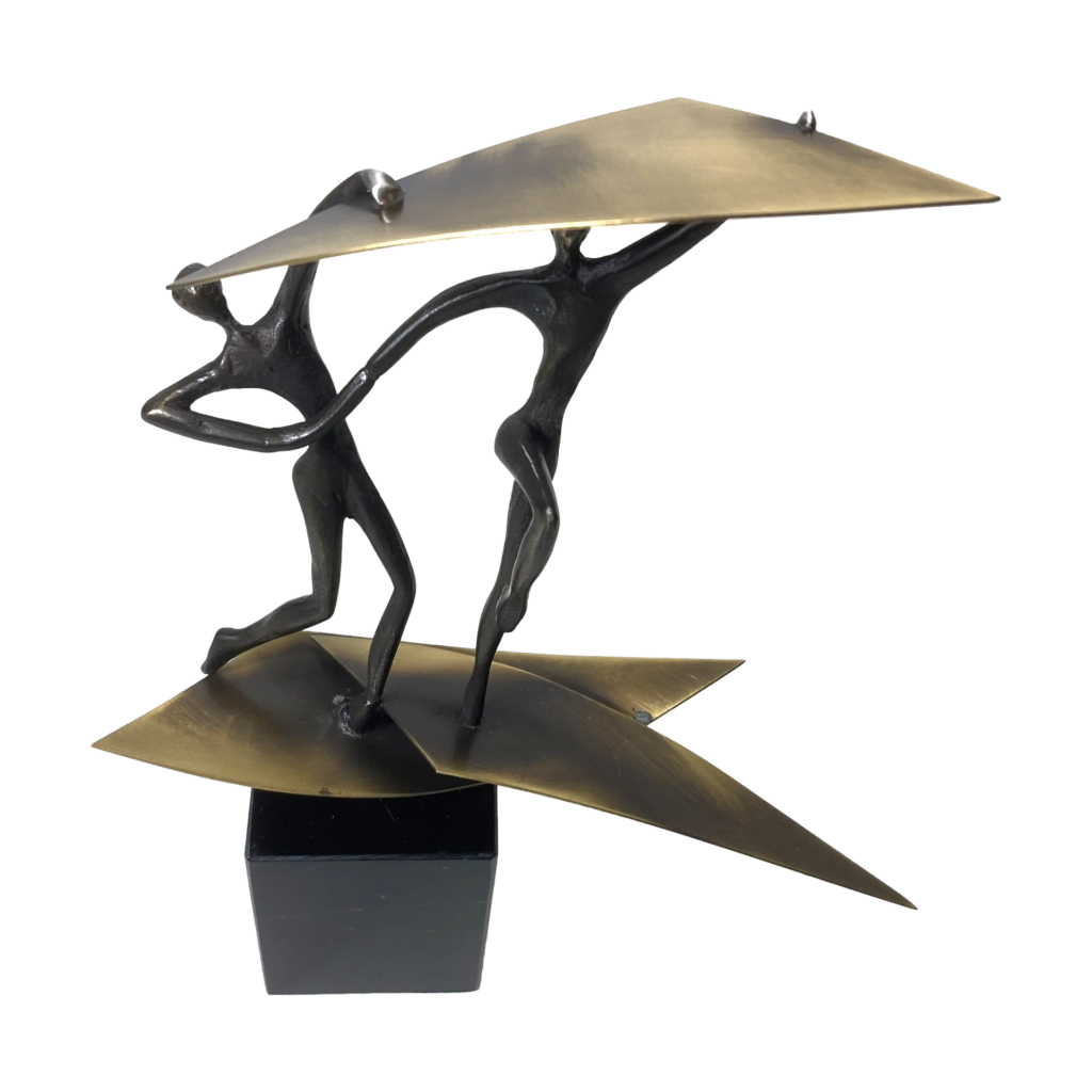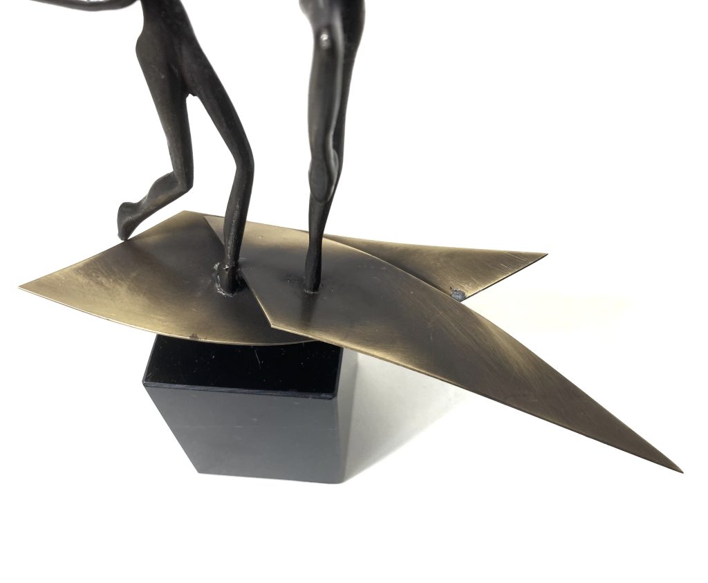 Verbronsd beeldje door Corrie Ammerlaan op sokkel. Titel: onbekend. Gemerkt: CAN. Formaat: hoog: 23 cm., breed: 16 cm. Sokkel: 7×5 cm. Het beeldje is gerestaureerd maar in goede staat.