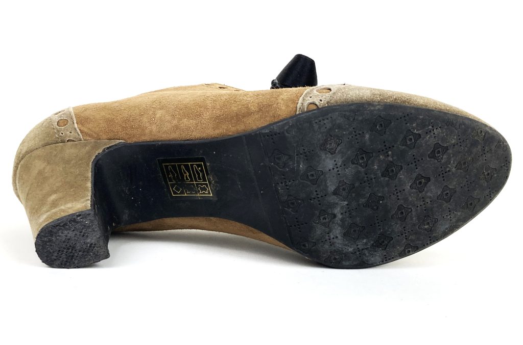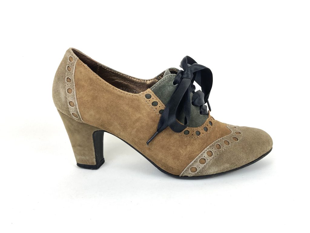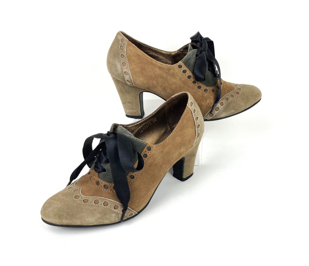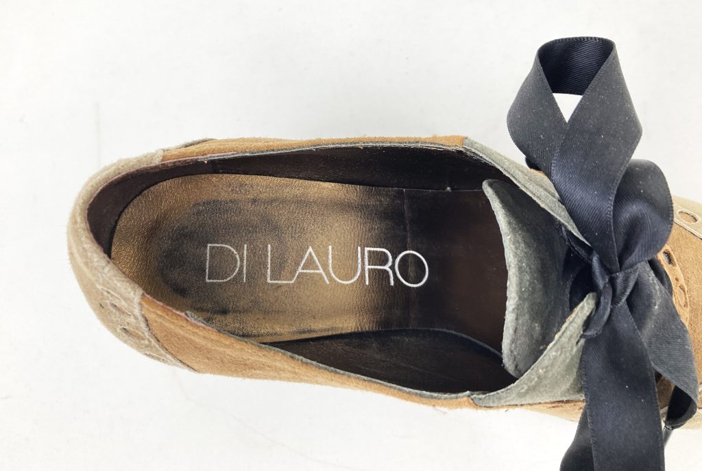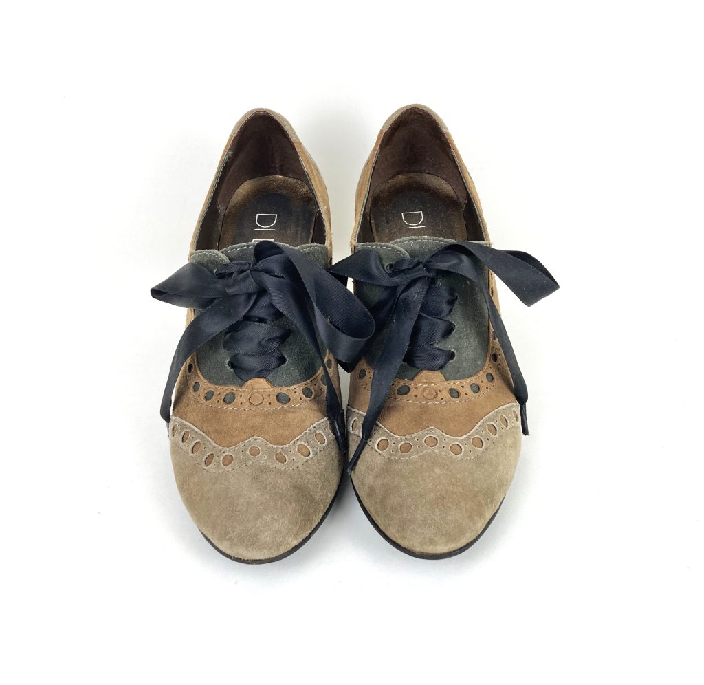 Suède dames schoenen van Di Lauro. Maat 36. In 3 bruin tinten. Hakhoogte: 7 cm. Vaste binnenzool. Leer gevoerd en kunststof zool. In uitstekende staat.