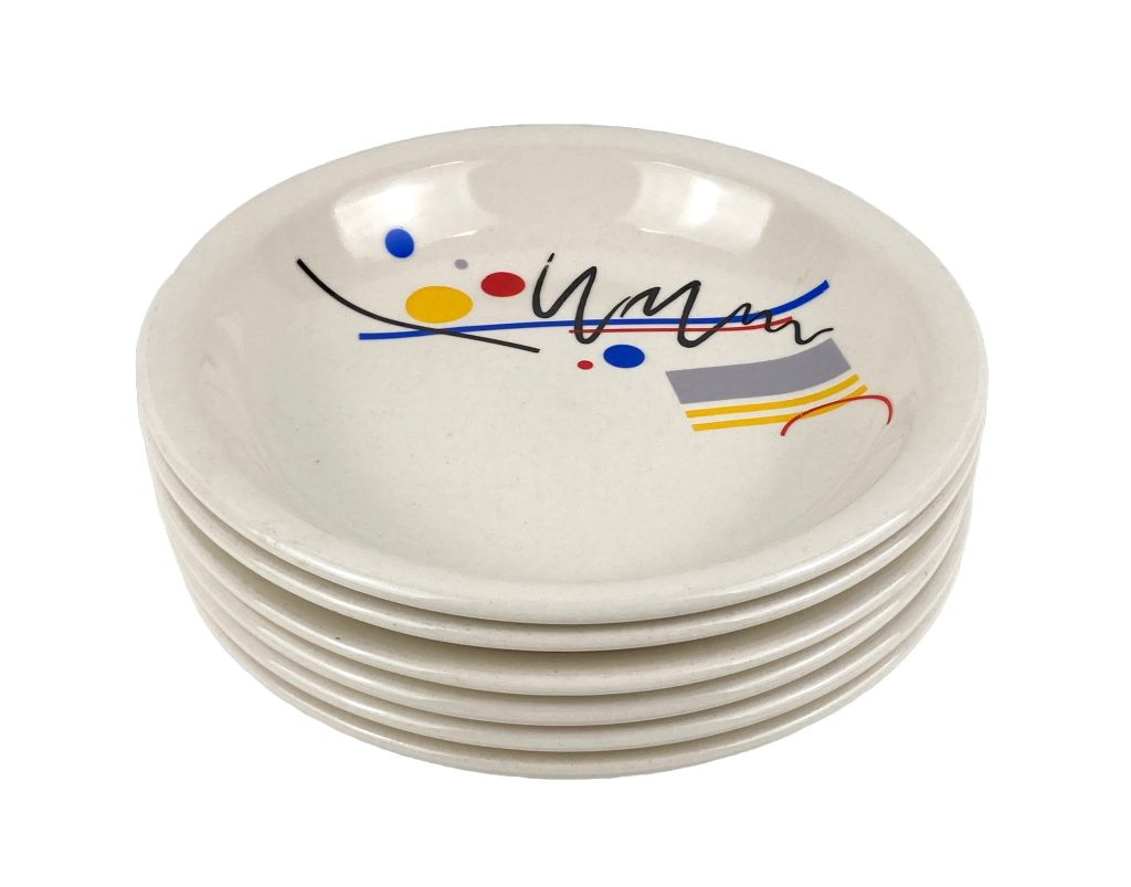 6 Vintage keramieken borden in Memphis stijl. Fabrikaat: Ditmar Urbach (Tsjechië). Jaren ’60.