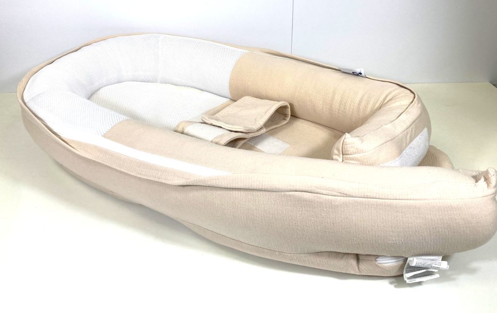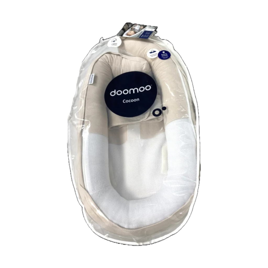 Doomoo Cocoon babynestje. Geeft je baby een begrensd gevoel zoals in de baarmoeder. Je baby zal dan minder snel wakker worden. Van biologisch katoen, elastaan en polyester. Kleur: tetra jersey sand. Schoon en zonder vlekken. Met beschrijving en in originele hoes. Nieuwprijs: 66,00. Uitsluitend afhalen.