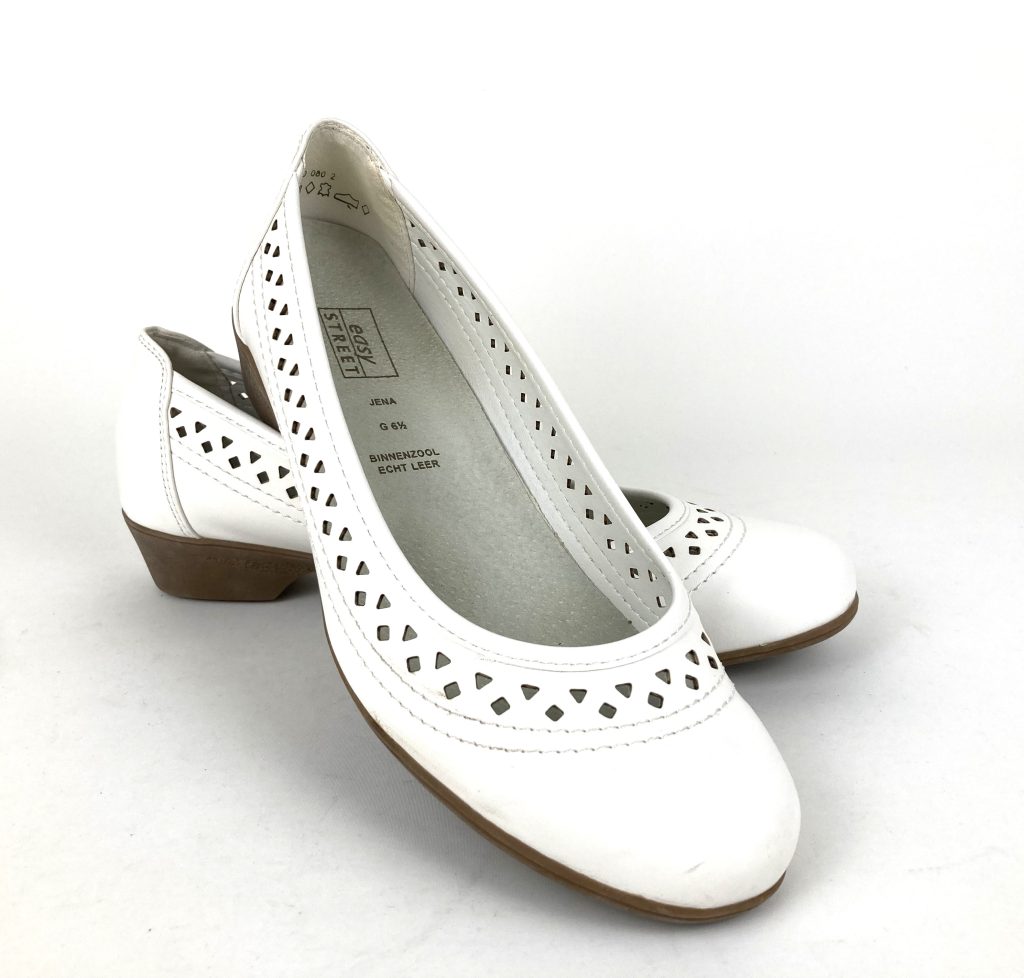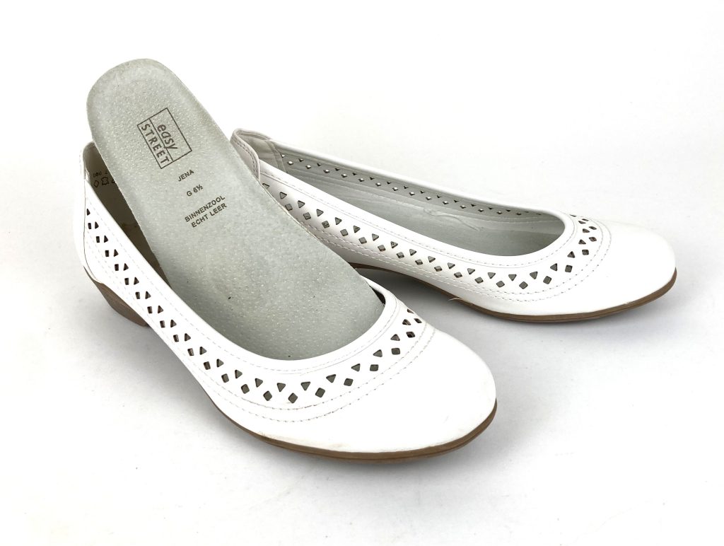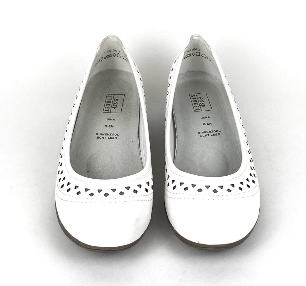 Nieuwe witte leren ballerina’s van Easy Street. Model JENA. Maat 40 G (=6,5 G). Normale pasvorm. Met uitneembare leren binnenzool en kunststof zool. Hakhoogte: 3 cm.