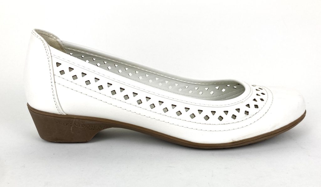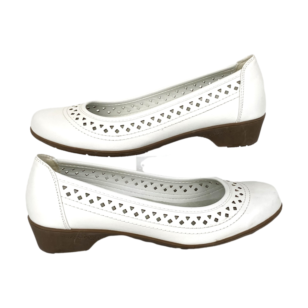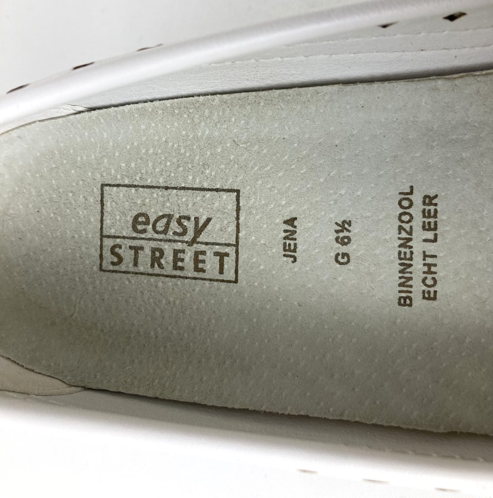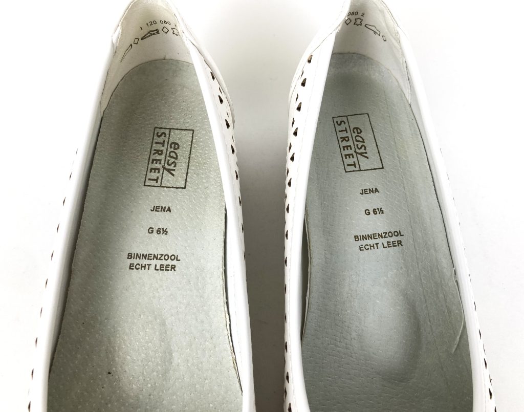 Nieuwe witte leren ballerina’s van Easy Street. Model JENA. Maat 40 G (=6,5 G). Normale pasvorm. Met uitneembare leren binnenzool en kunststof zool. Hakhoogte: 3 cm.