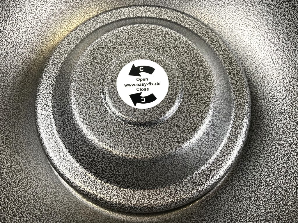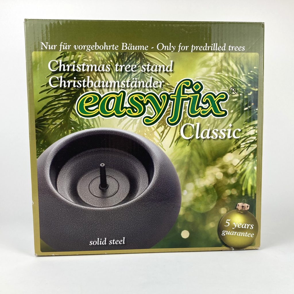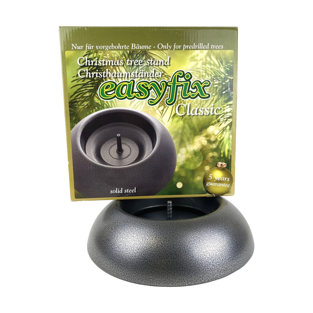 Easyfix Classic Kerstboom standaard. Met waterreservoir voor langdurig behoud van de naalden. Van mat zwart metaal. In originele doos.