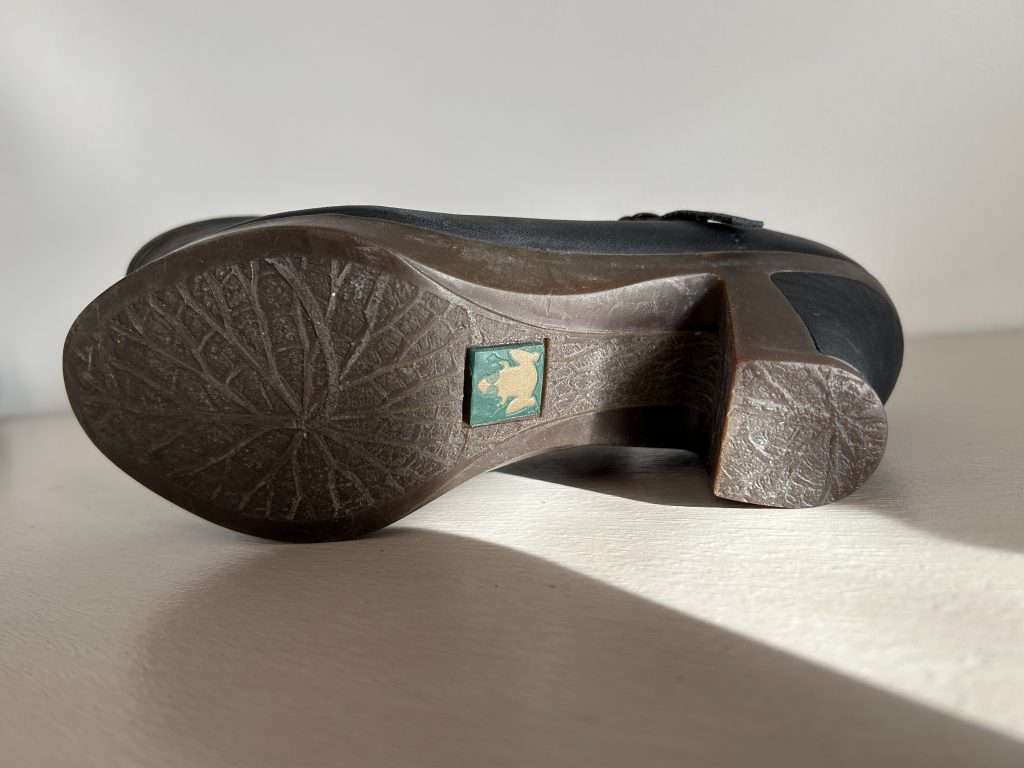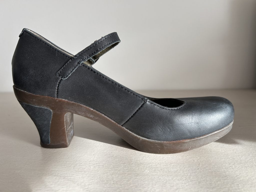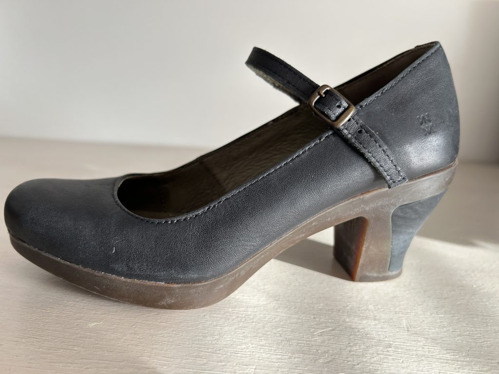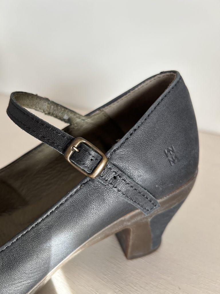 Deze pumps zijn van leer met rubber zolen. De kleur is blauw/grijs waardoor het met veel kleuren te combineren is.