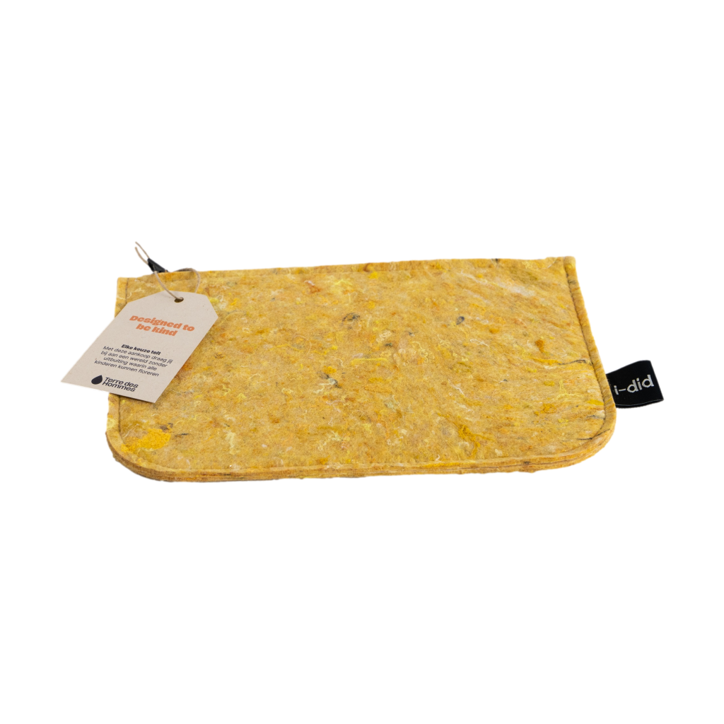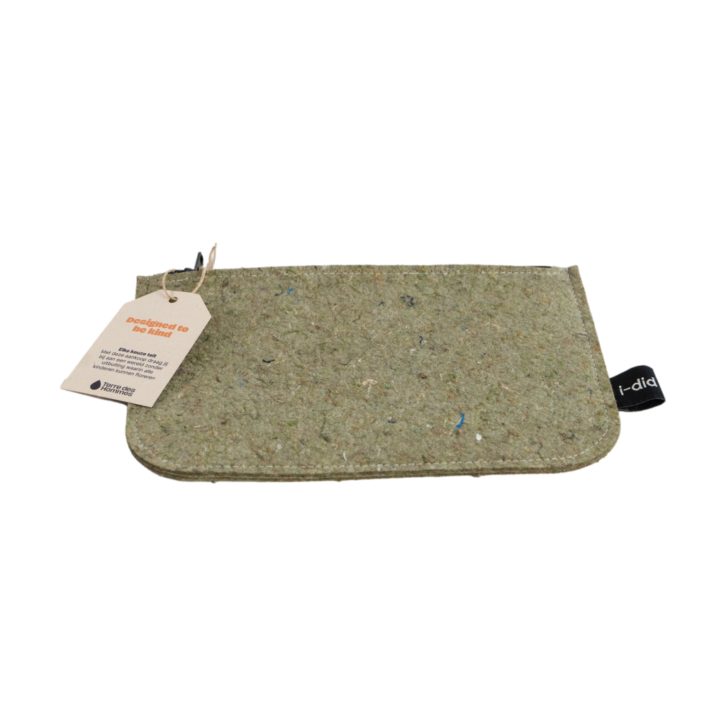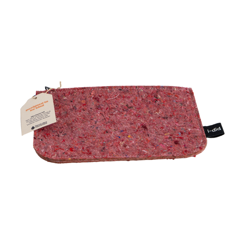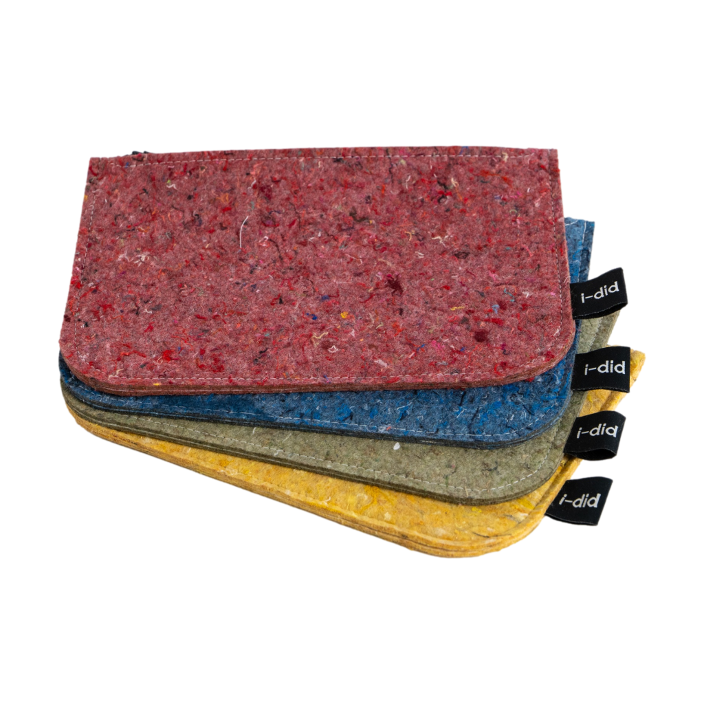 Net als alle andere producten van i-did is deze etui gemaakt van gerecyclede (bedrijfs)kleding. In hun ateliers krijgt het materiaal een tweede leven: zorgvuldig omgevormd tot hoogwaardig, stevig vilt. Hier werken mensen met een afstand tot de arbeidsmarkt, die met vakmanschap deze bijzondere items creëren. Zo combineert i-did duurzaamheid met sociale impact op het hoogste niveau.