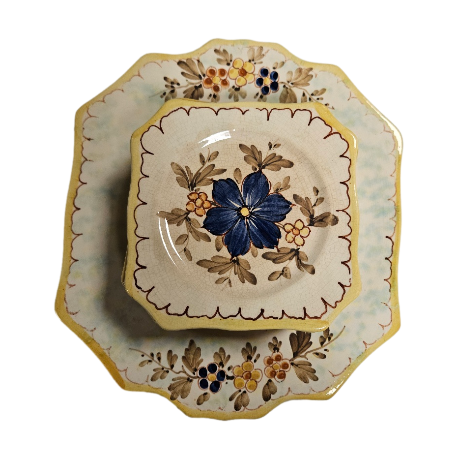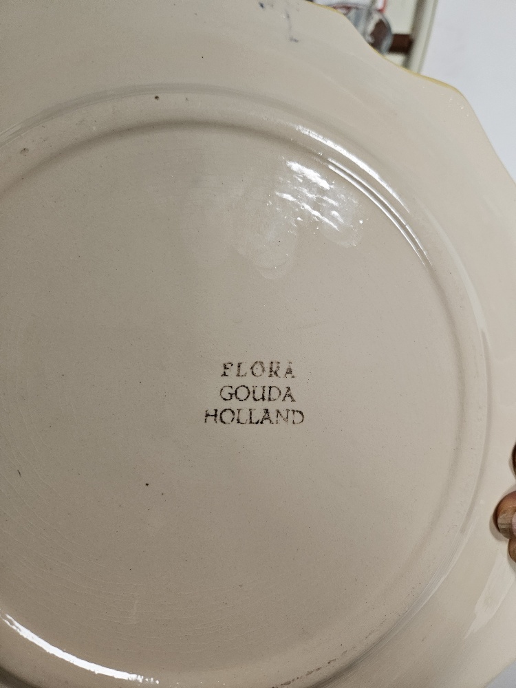 Dit prachtige gebakstel van Flora Holland is volledig handgeschilderd en voorzien van het originele Flora Holland-stempel. Het stel is uitgevoerd in een rijk en kleurrijk bloemenpatroon en straalt klassieke charme uit.