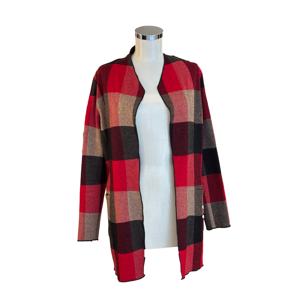 Frank Walder-damesvest-rood/zwart/beige-Maat M/38