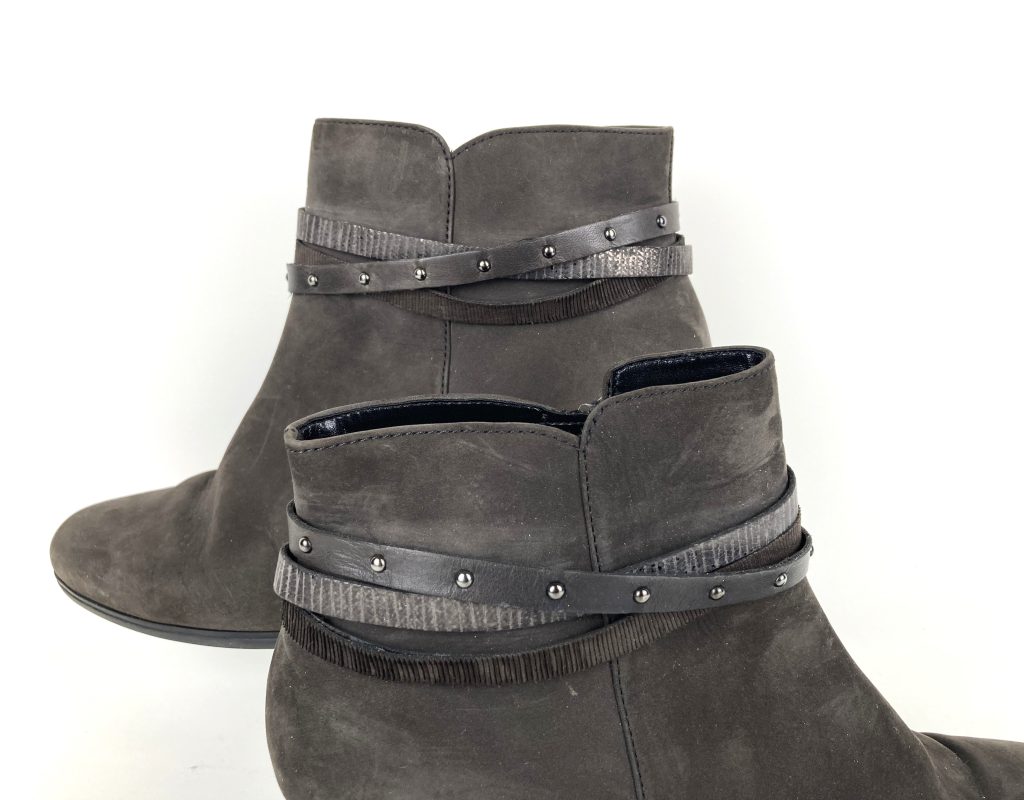 Taupekleurige suède dames enkellaarsjes van Gabor.