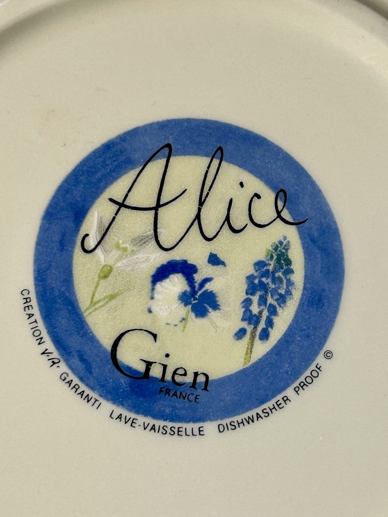Gien servies wordt gefabriceerd in het stadje Gien in Frankrijk. ALICE is de serie met de kenmerkende verfijnde bloemmotieven in het blauw-witte kleurenpalet.