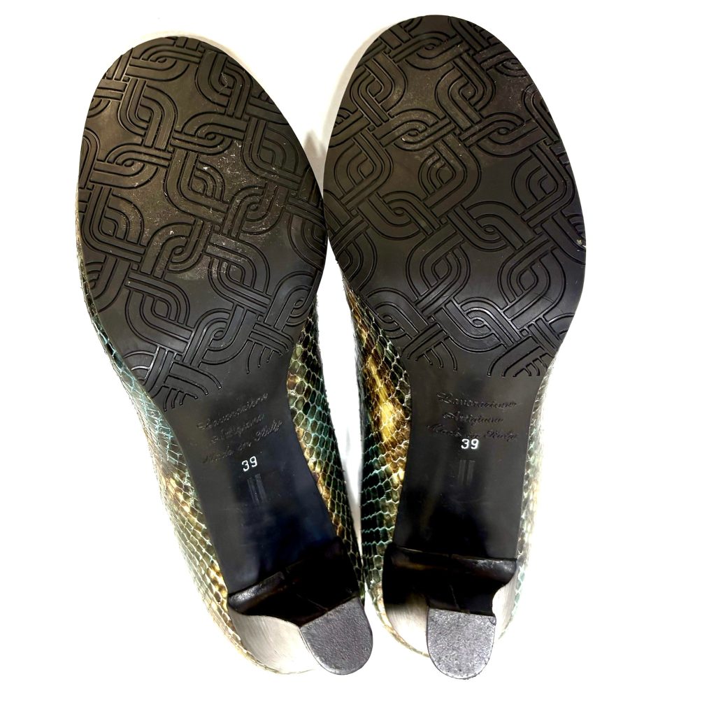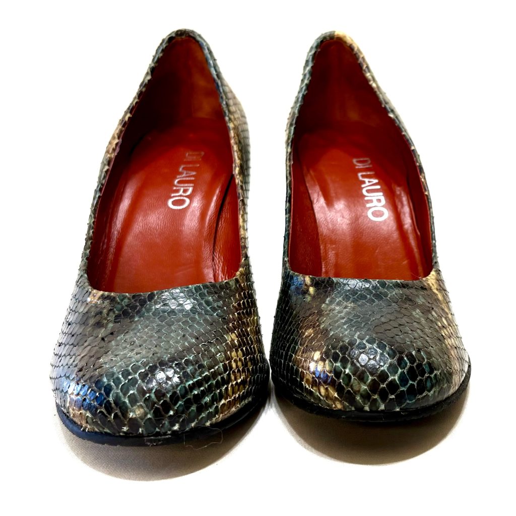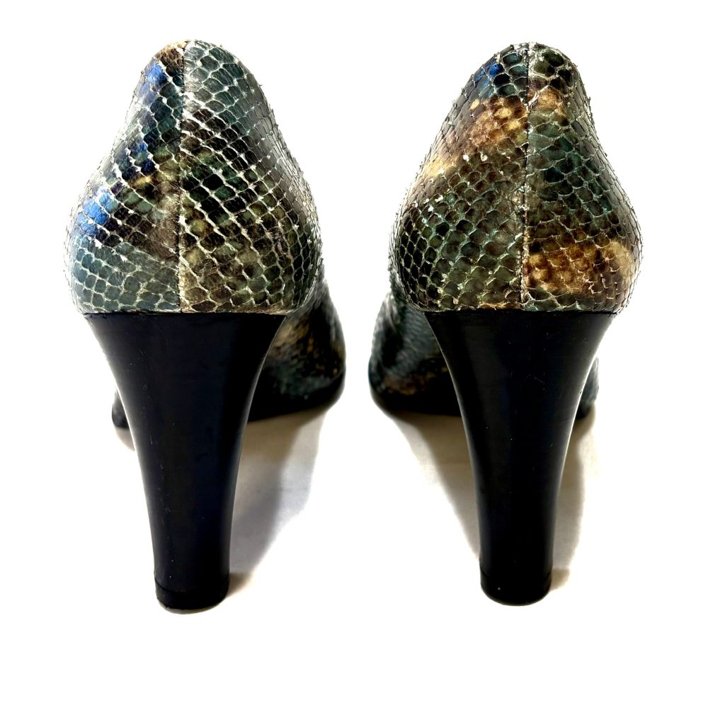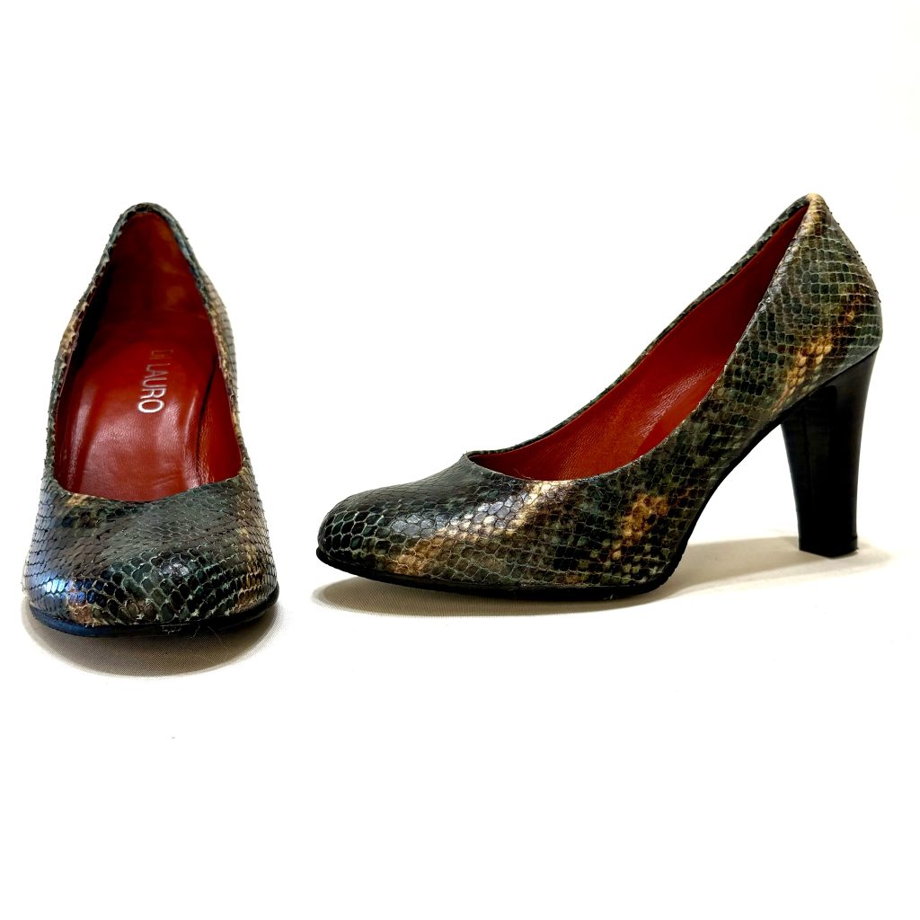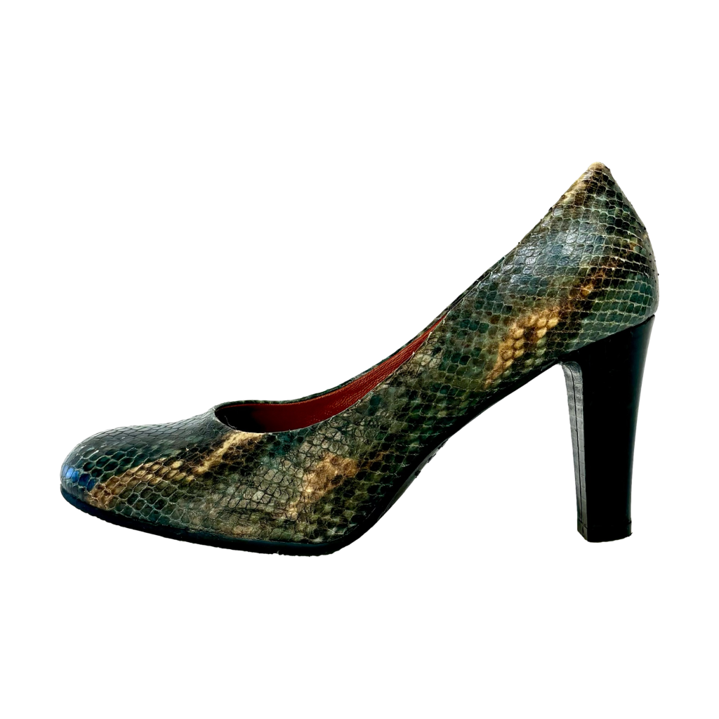 Petrol kleurige pumps met slangenprint van Di Lauro