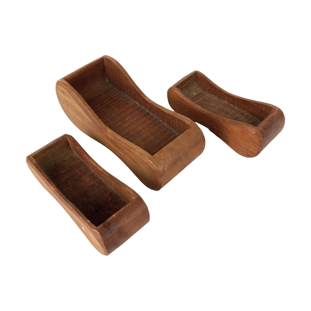 3 Vintage massief (vermoedelijk) beukenhouten poppenhuis bedjes. Fabrikaat: Haist (nu: Grimm’s). Ongemerkt. Voor formaat en conditie: zie foto’s.