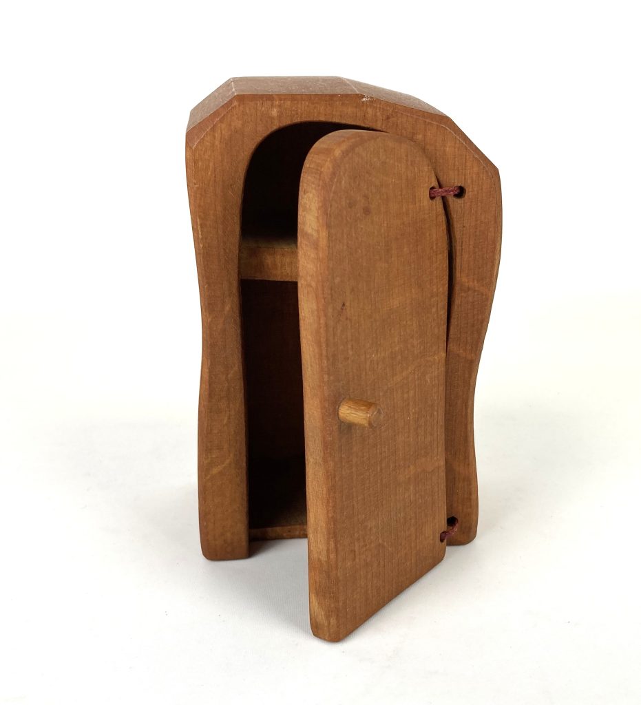 Drie vintage massief (vermoedelijk) beukenhouten poppenhuis kasten. Fabrikaat: Haist (nu: Grimm’s). Ongemerkt. Voor formaat en conditie: zie foto’s.