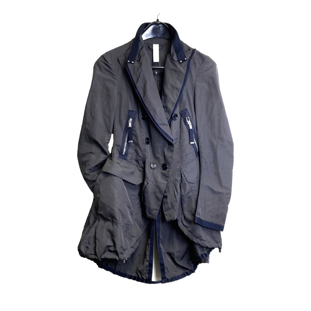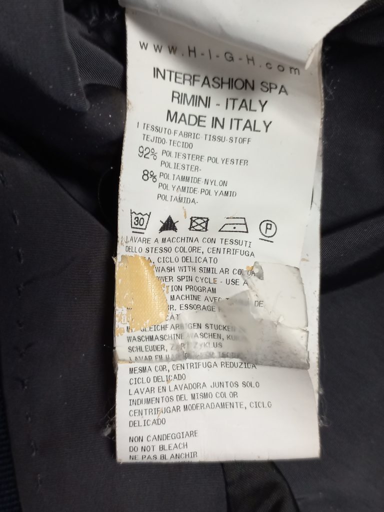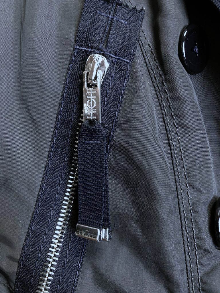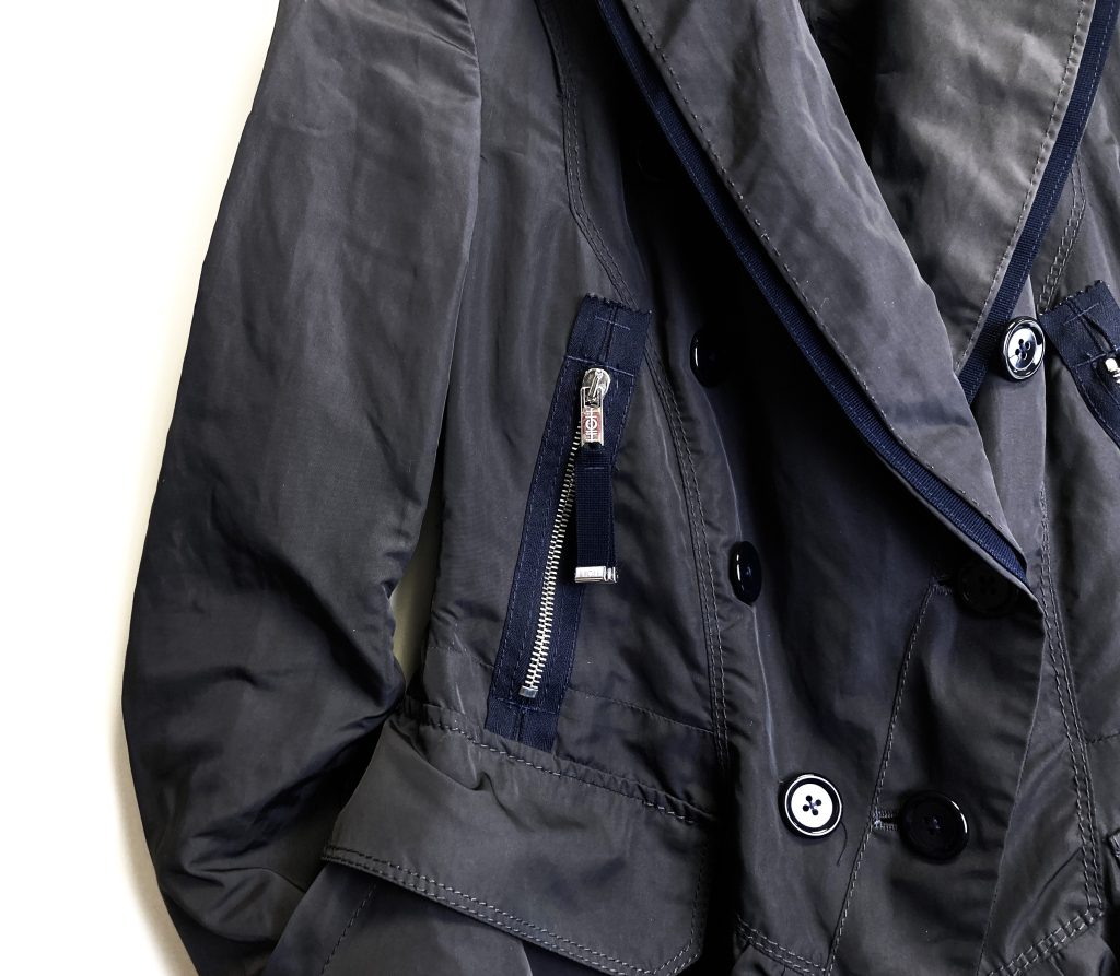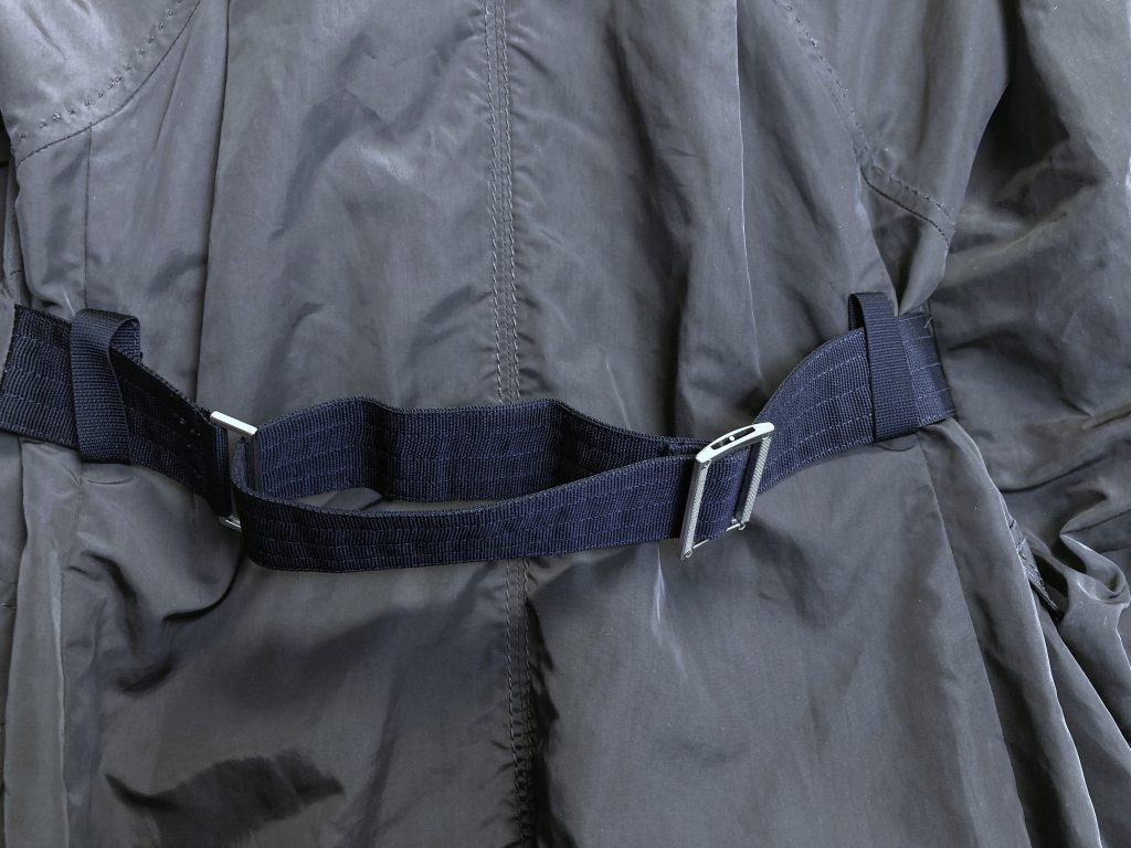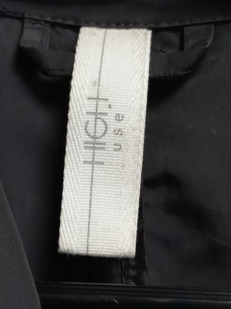 Zwarte dames jas van High use – Interfashion Spa Rimini-Italy. Maat 36. Kleur: antraciet met blauwe accenten. Met twee rits zakken, ceintuur en onderaan een trekkoord. Lengte: 93 cm. Van oksel tot oksel: 42 cm. Mouwlengte vanaf de schoudernaad: 64 cm. Wasbaar op 30 graden. In uitstekende staat.