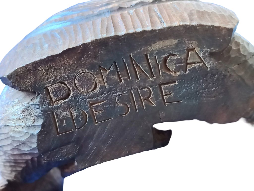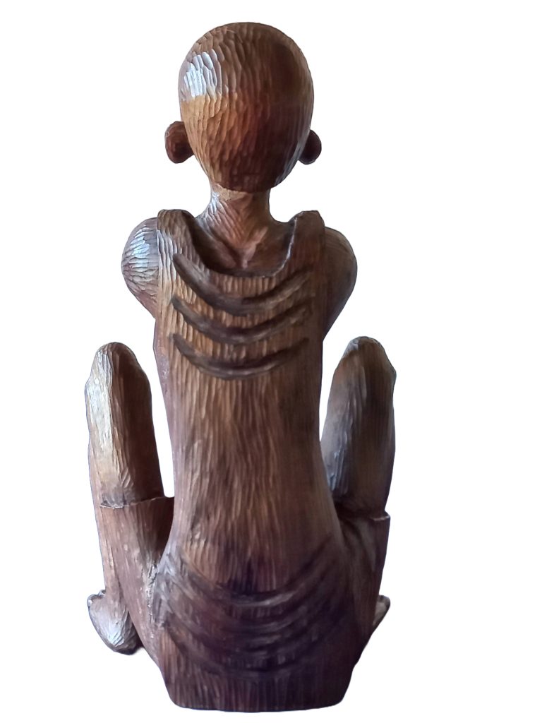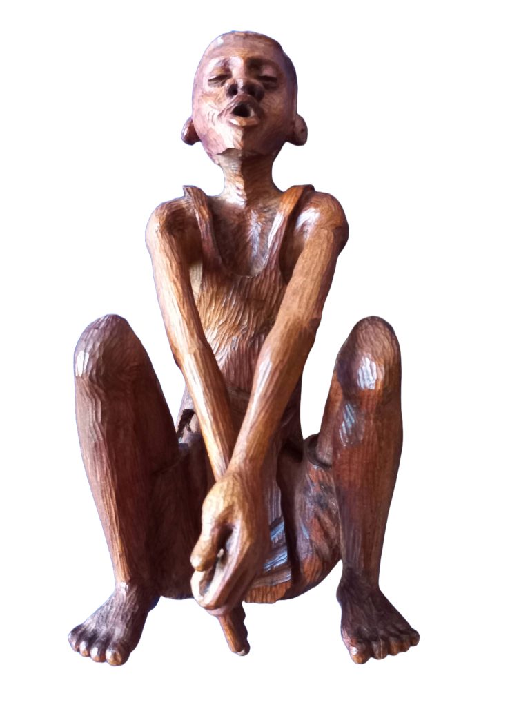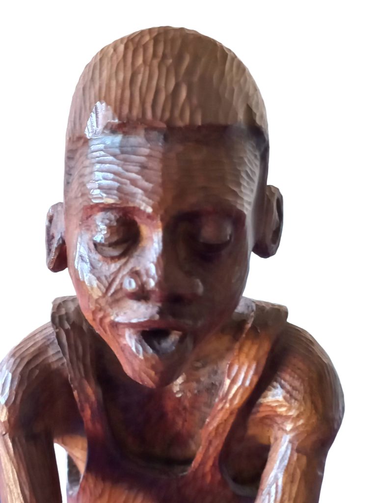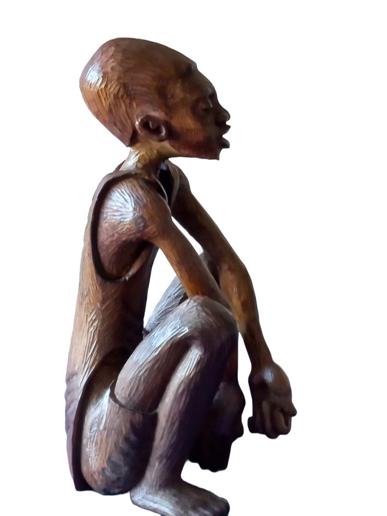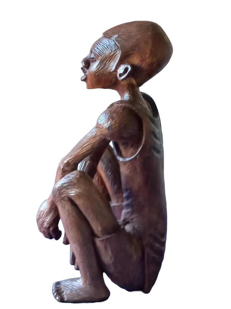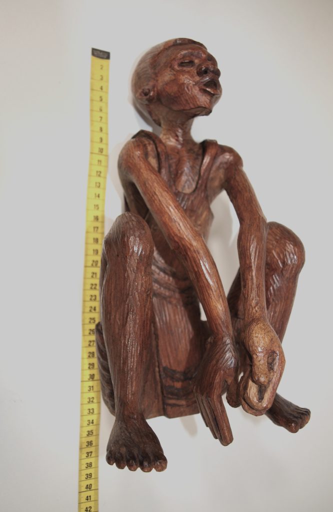 Houten beeld van een zittende man. Afkomstig van Dominica.