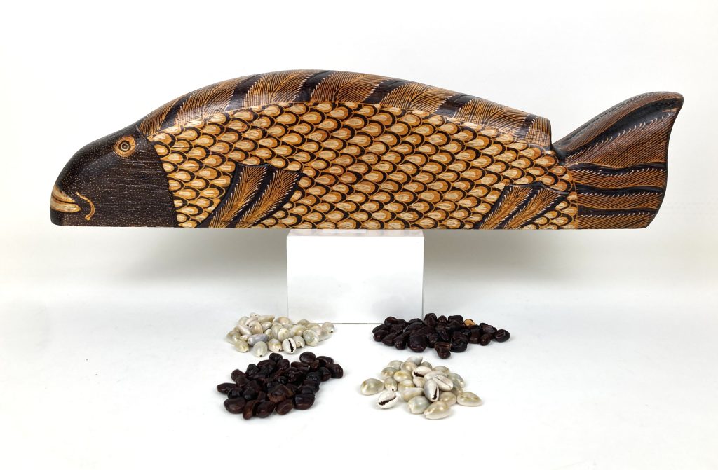 Houten Indonesisch mancala spel – Visvorm