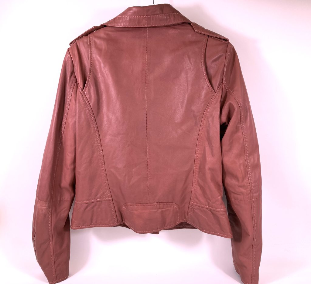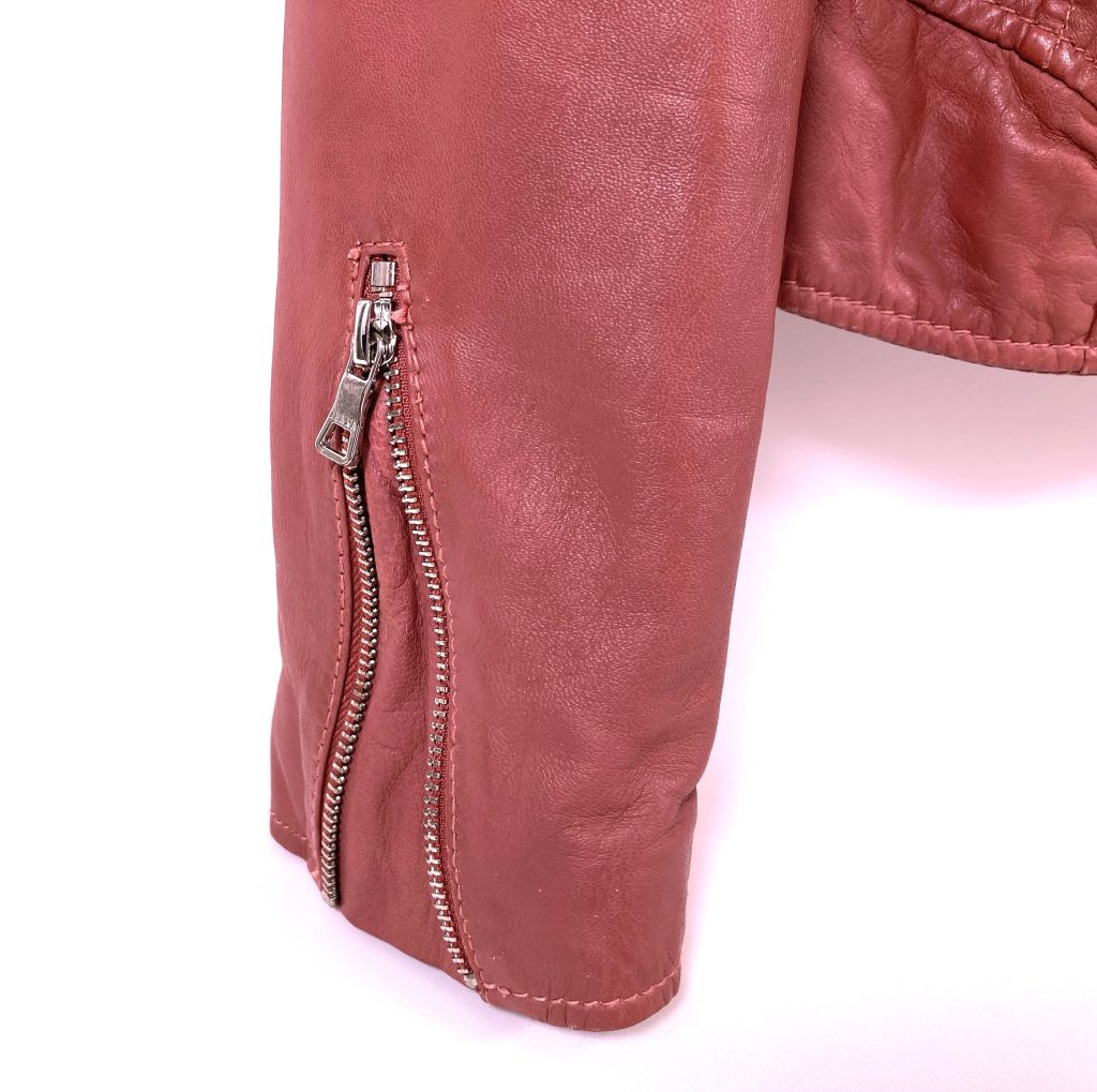 Leren biker jack van het merk Ibana. Kleur: Oud roze.
