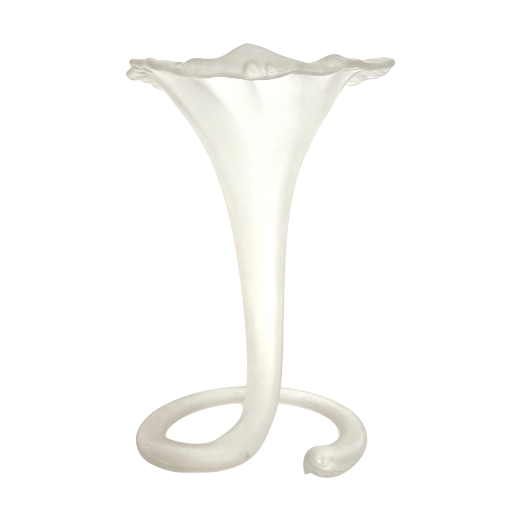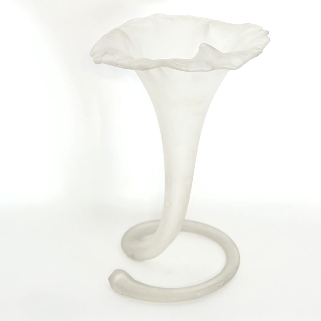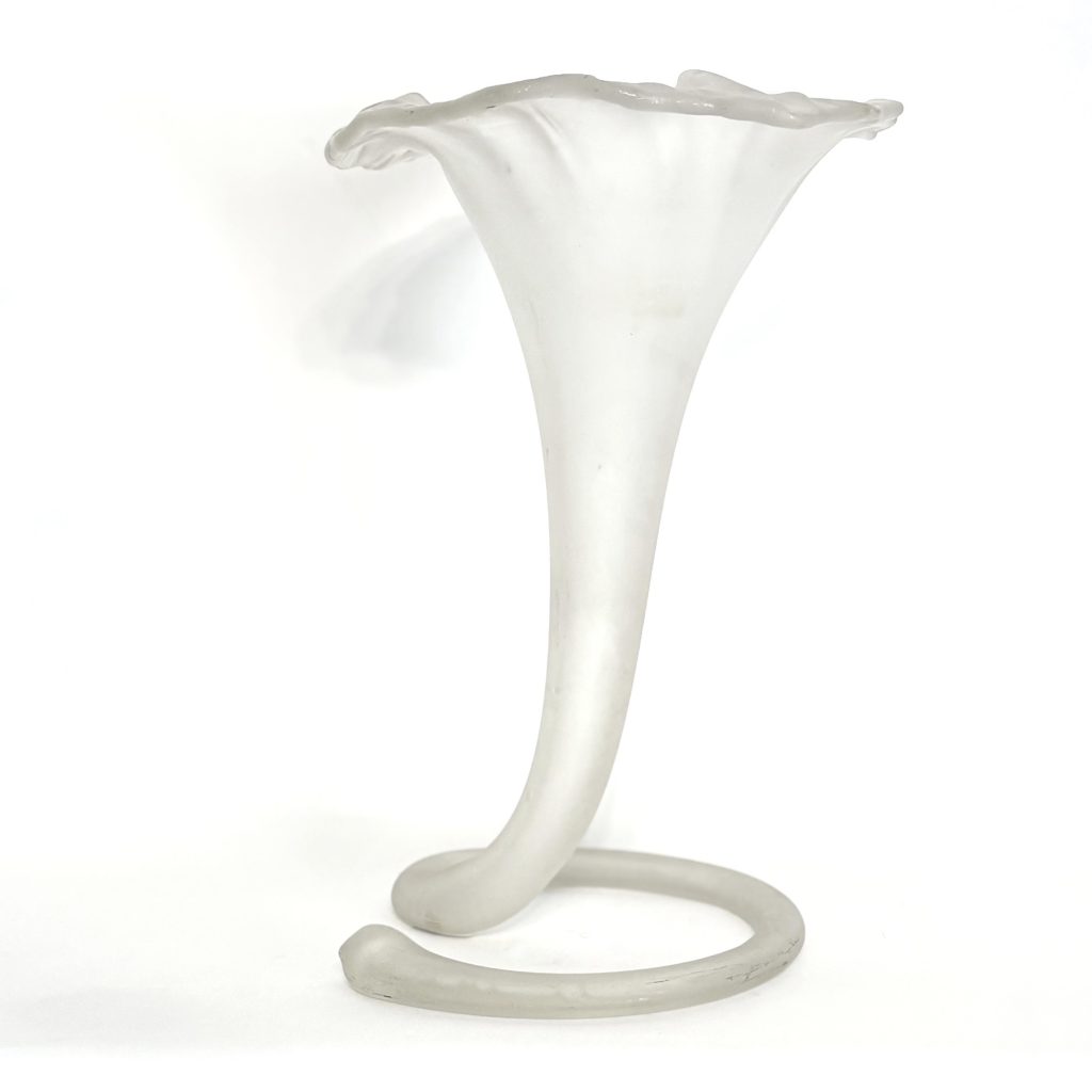 Deze Italiaanse Lelyvaas is gemaakt van opaline, ook wel gesatineerd glas of matglas. Het is een prachtig object mét of zonder bloemen. Deze vaas werd ook in kleiner formaat gemaakt, maar je ziet ze niet vaak in deze afmeting.