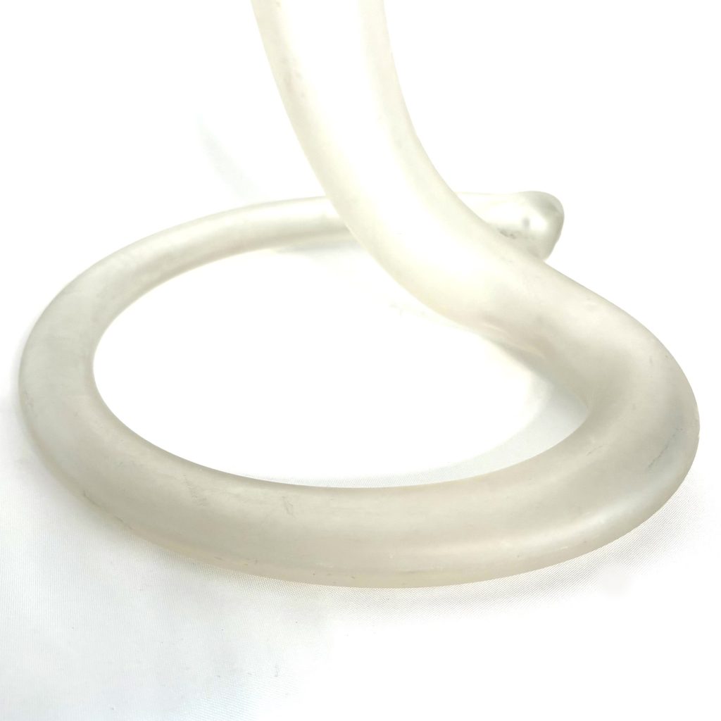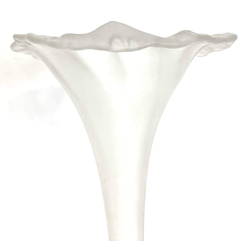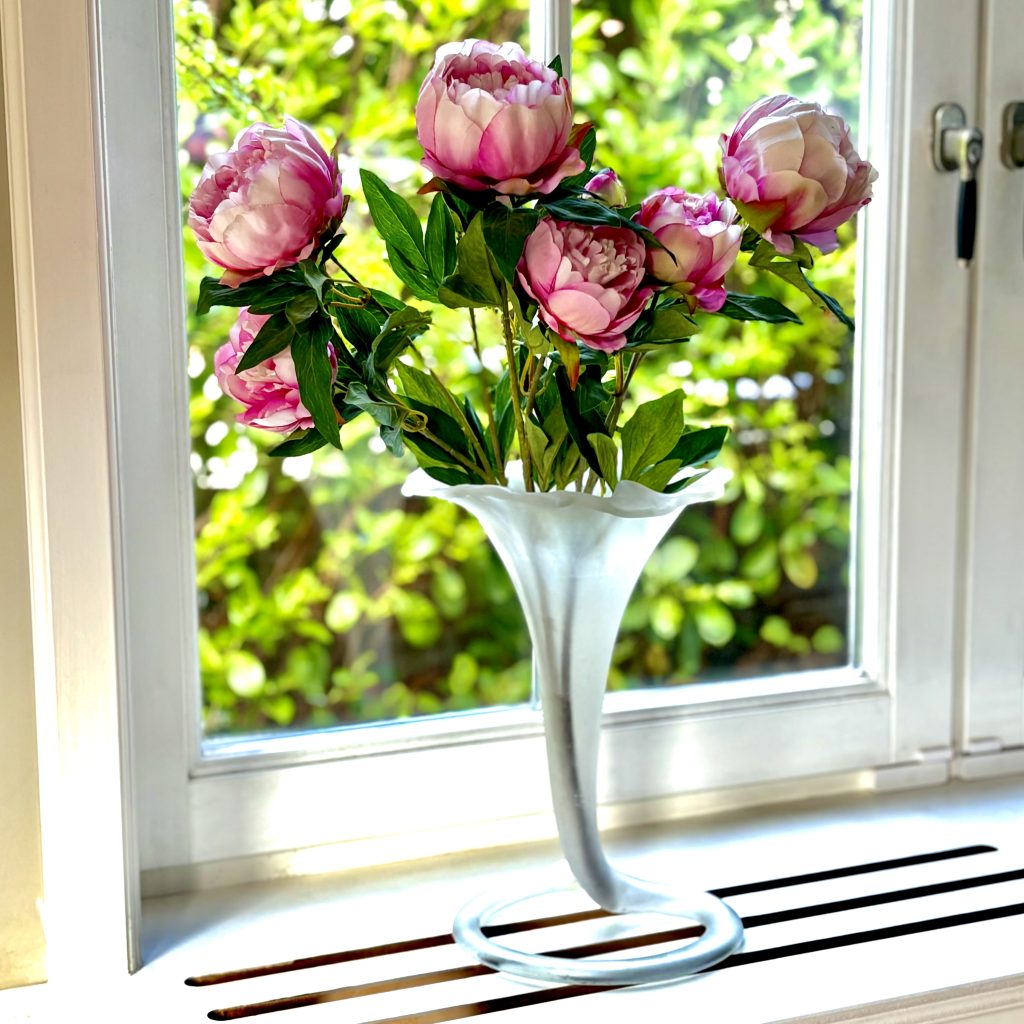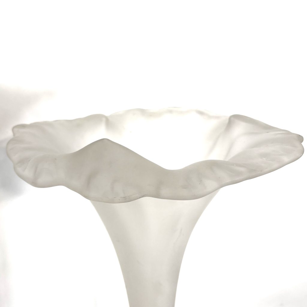 Deze Italiaanse Lelyvaas is gemaakt van opaline, ook wel gesatineerd glas of matglas. Het is een prachtig object mét of zonder bloemen. Deze vaas werd ook in kleiner formaat gemaakt, maar je ziet ze niet vaak in deze afmeting.