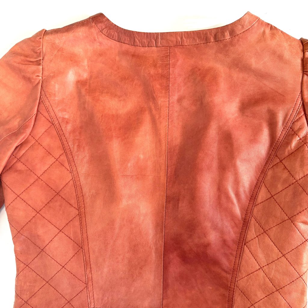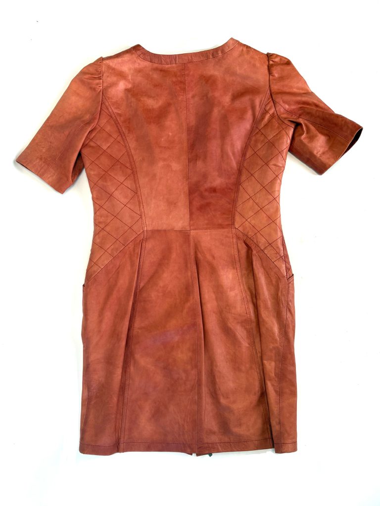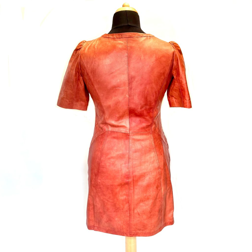 Gemaakt van hoogwaardig roodbruin leer, straalt deze jurk een geraffineerde mix uit van structuur, comfort en stijl. Het korte mouwontwerp en de getailleerde pasvorm accentueren het silhouet.
