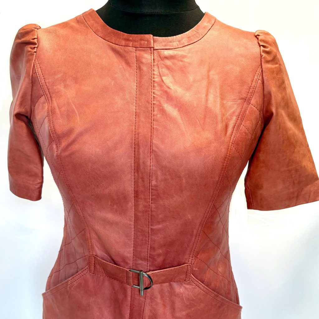 Ontdek de kracht van vrouwelijke finesse met deze exclusieve leren jurk van Caroline Biss.