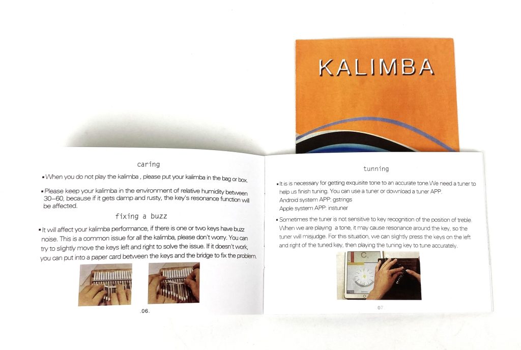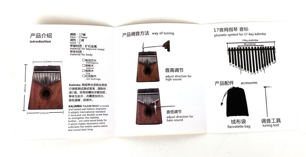 Kalimba duimpiano met 17 tonen. Voor leeftijd vanaf 4 jaar. Met muziekboek, stemhamer, microvezel poetsdoek, vingerbeschermers, toon stickers.
