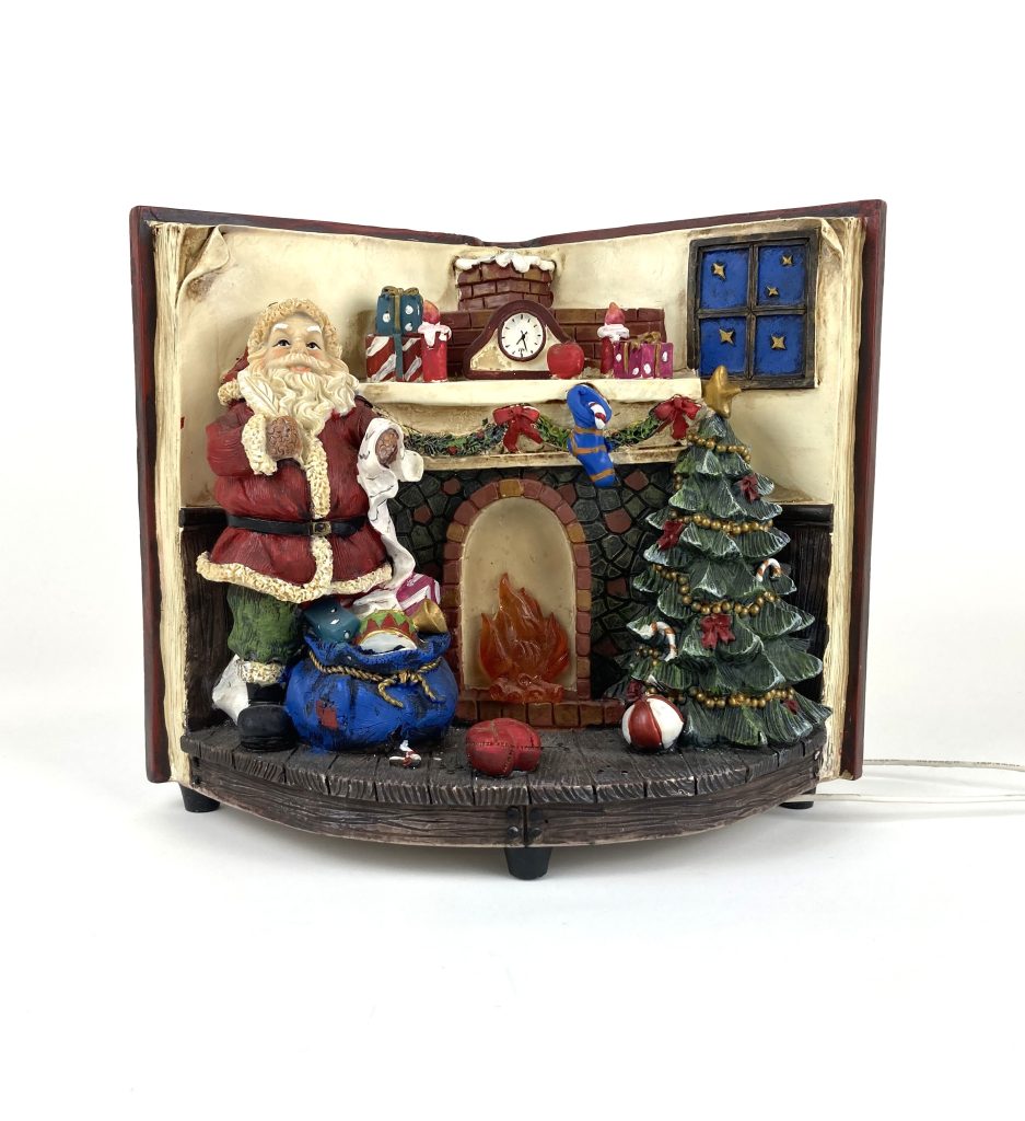 Groot Kerst decoratie Boek “Kerstman bij open haard”. Met verlichting.