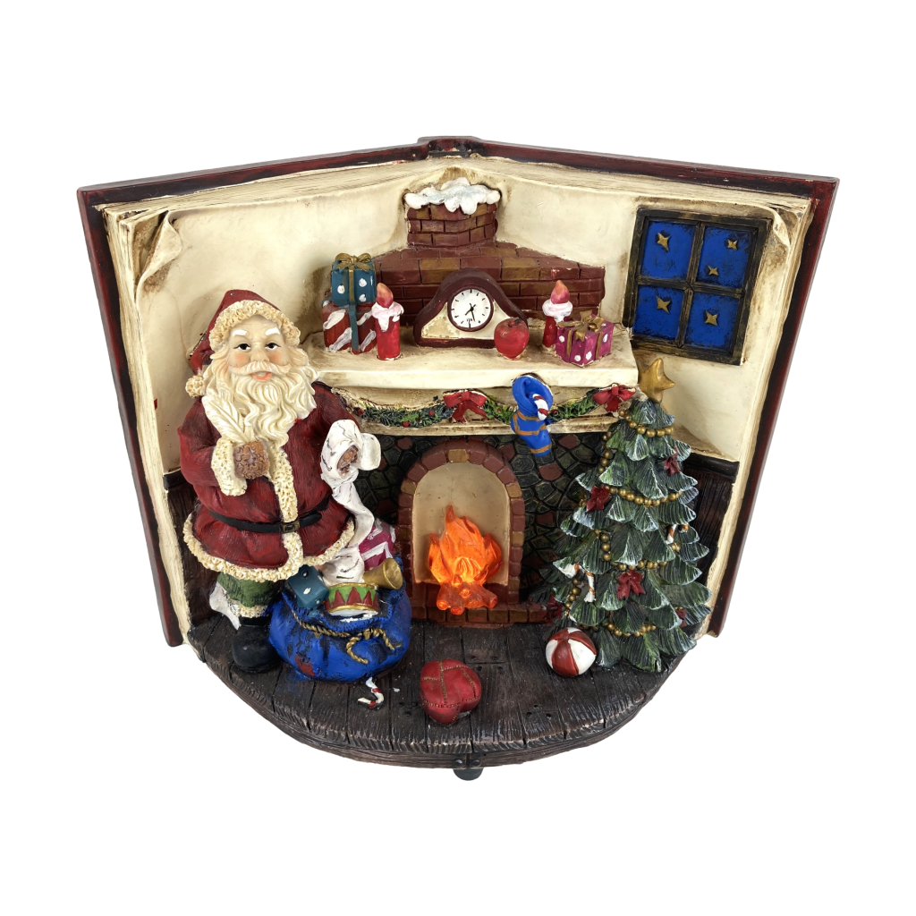 Kerst decoratie boek “Kerstman bij open haard” – Met verlichting