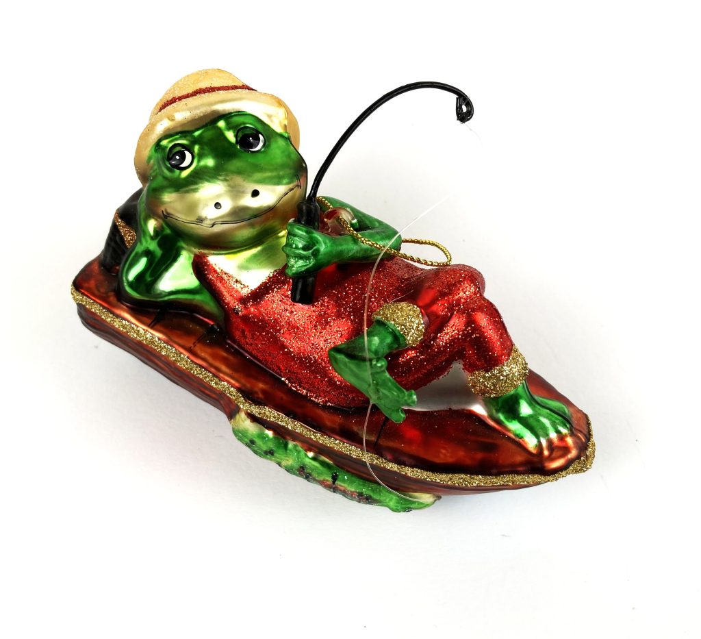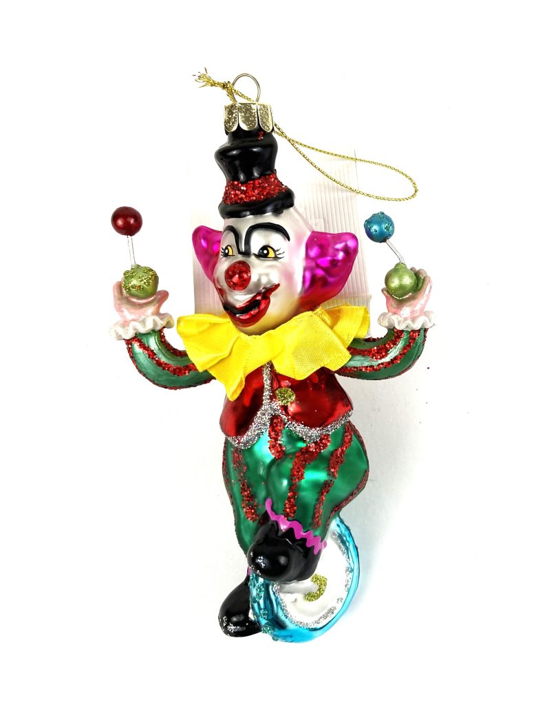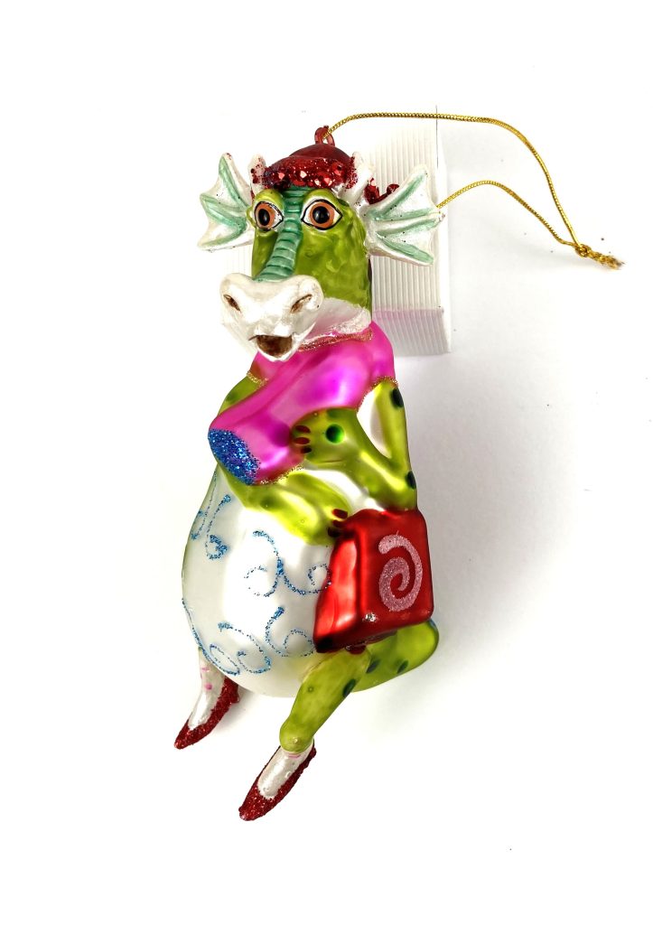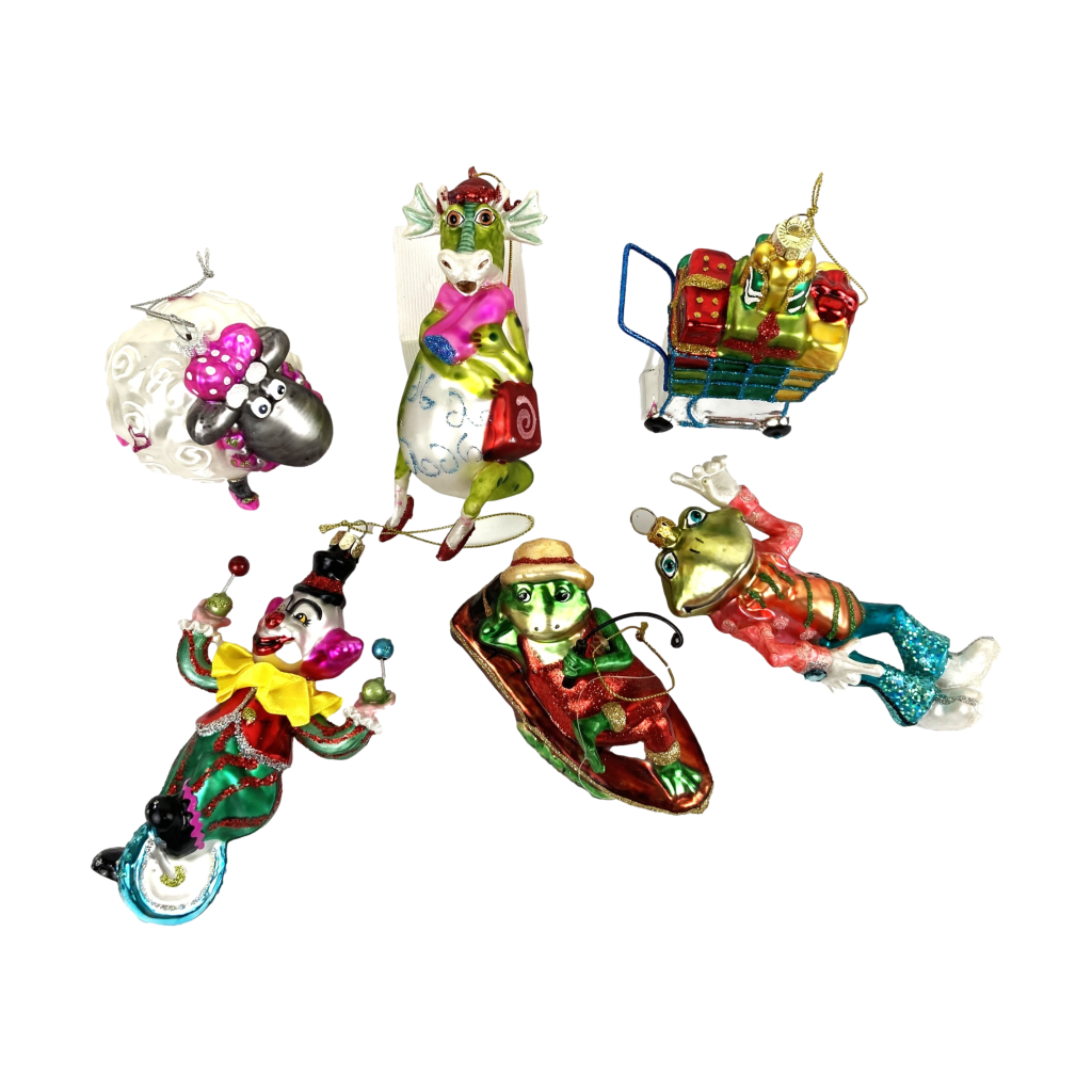 Kerst ornamenten fun glas / Kerstboom hangers – 5 Stuks – Glas – Draak, clown, winkelwagen, 2x kikker, schaap
