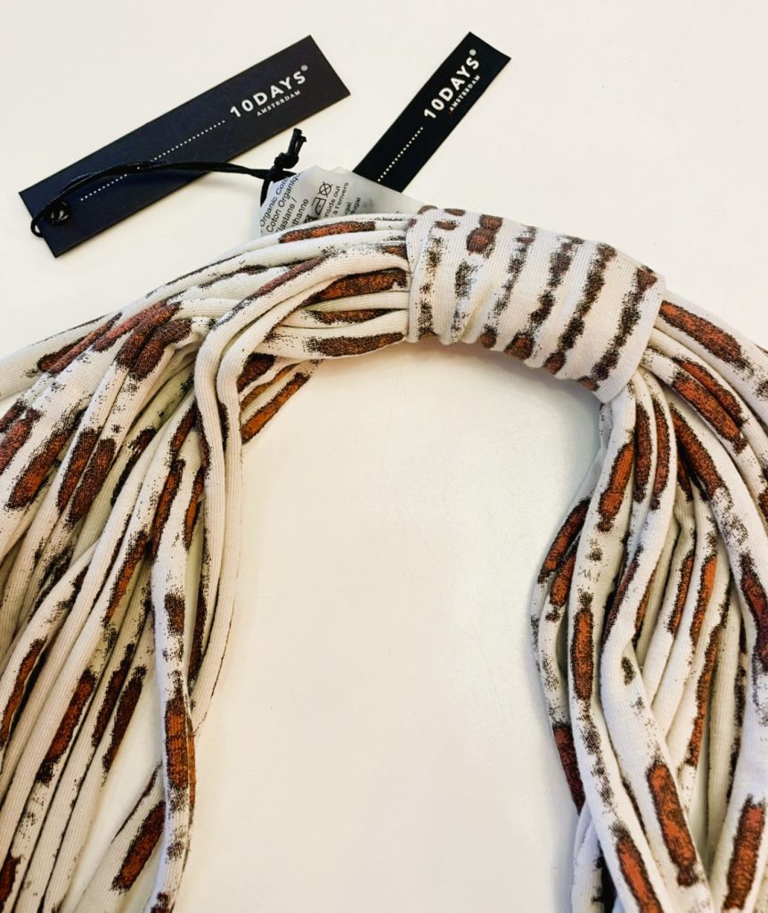 Halssierraad – skeleton Scarf van 10DAYS Amsterdam in light safari met label.