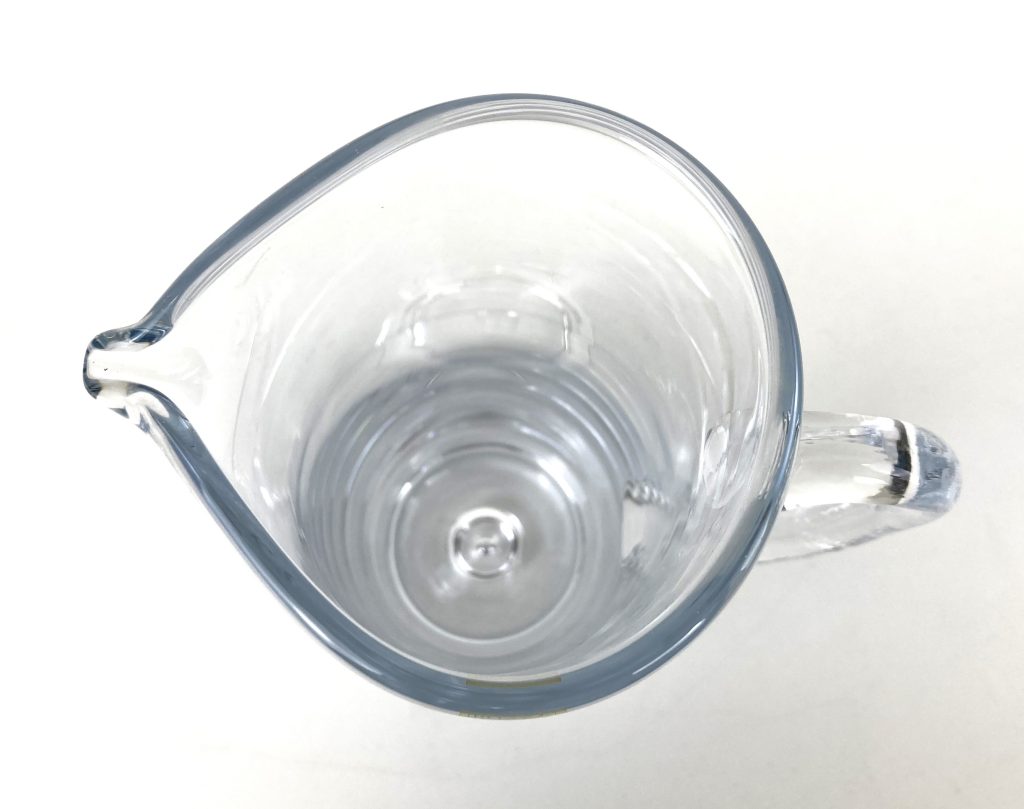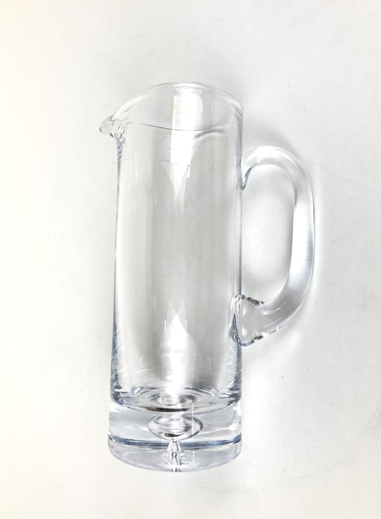 Afmetingen: Dikte bodem: 3 cm, Hoogte waterkan: 26 cm, diameter: 9 cm. Hoogte glas: 9 cm, diameter: 8 cm.